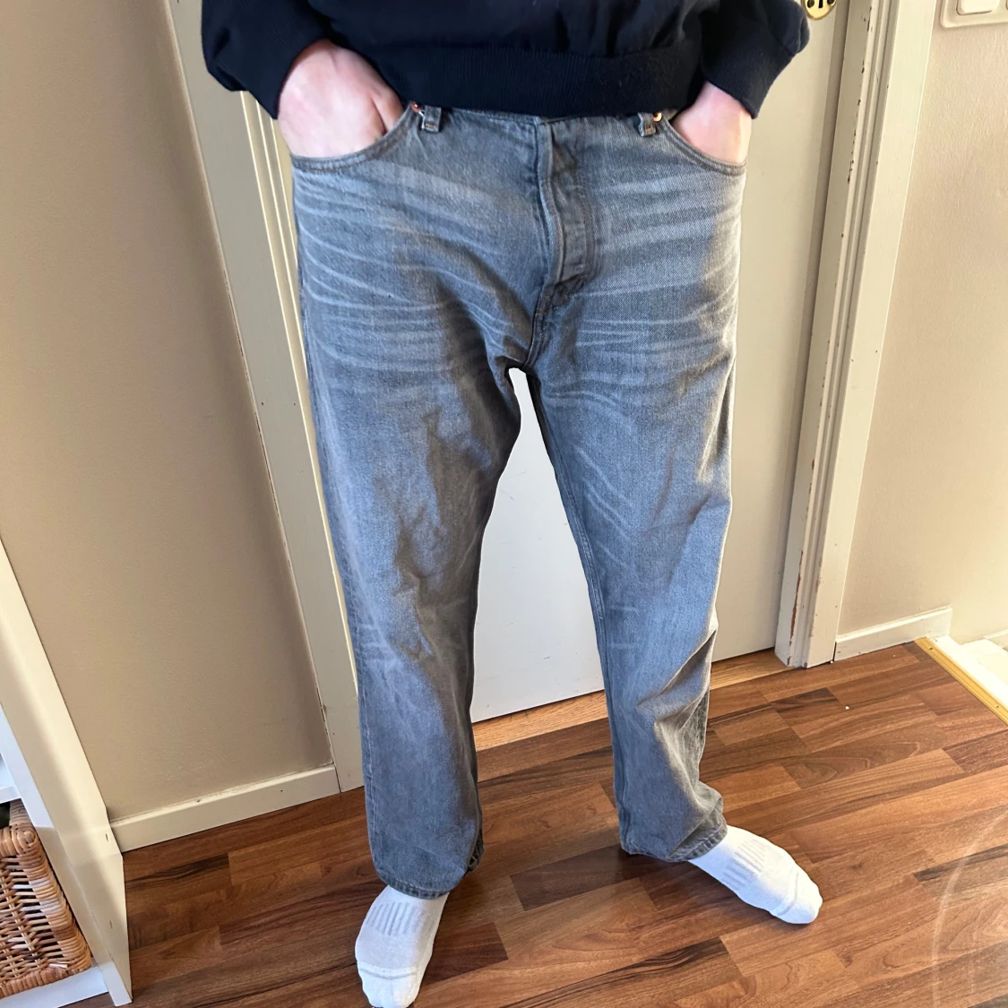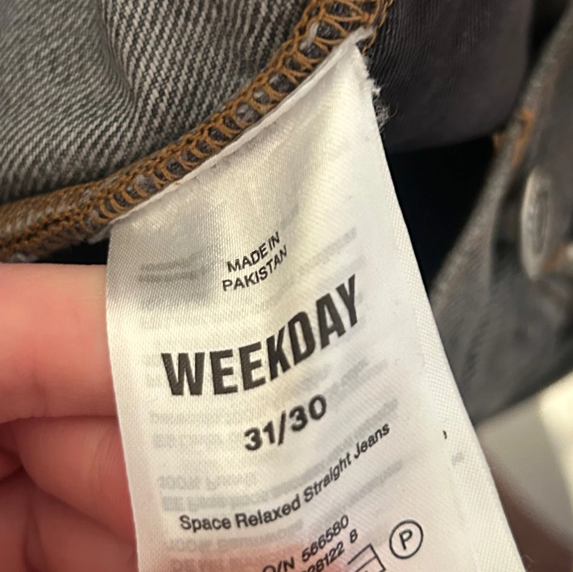 Grå jeans från Weekday i modellen Space Relaxed Straight. Storlek 31/30