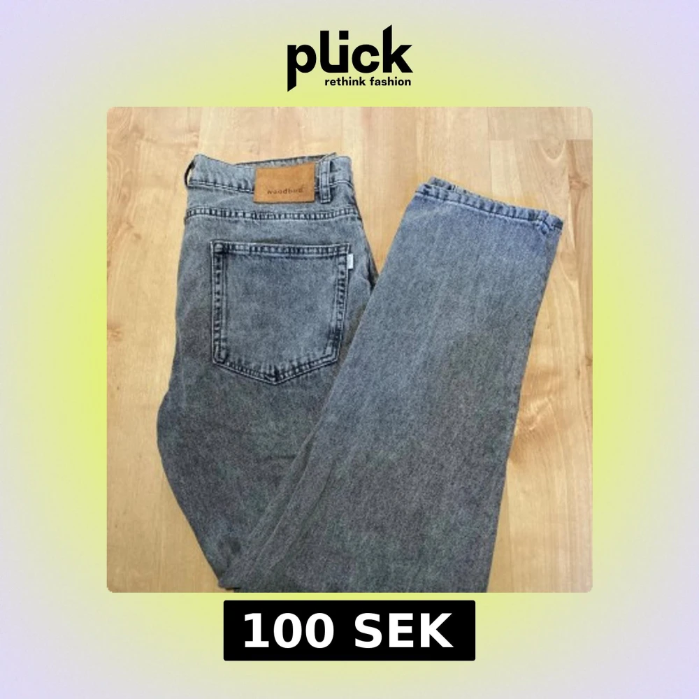 Säljer ett par grå jeans från Woodbird i rak passform. Jeansen är tillverkade i ekologisk bomull och har klassisk femficksdesign, dragkedja och knapp framtill. Snygg tvättad grå färg som passar till det mesta. Perfekta för dig som gillar en clean och stilren look. Bilder och Mått finns om du vill ha. W32 L32