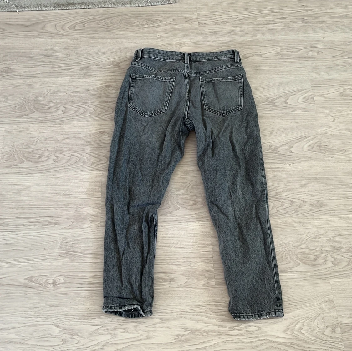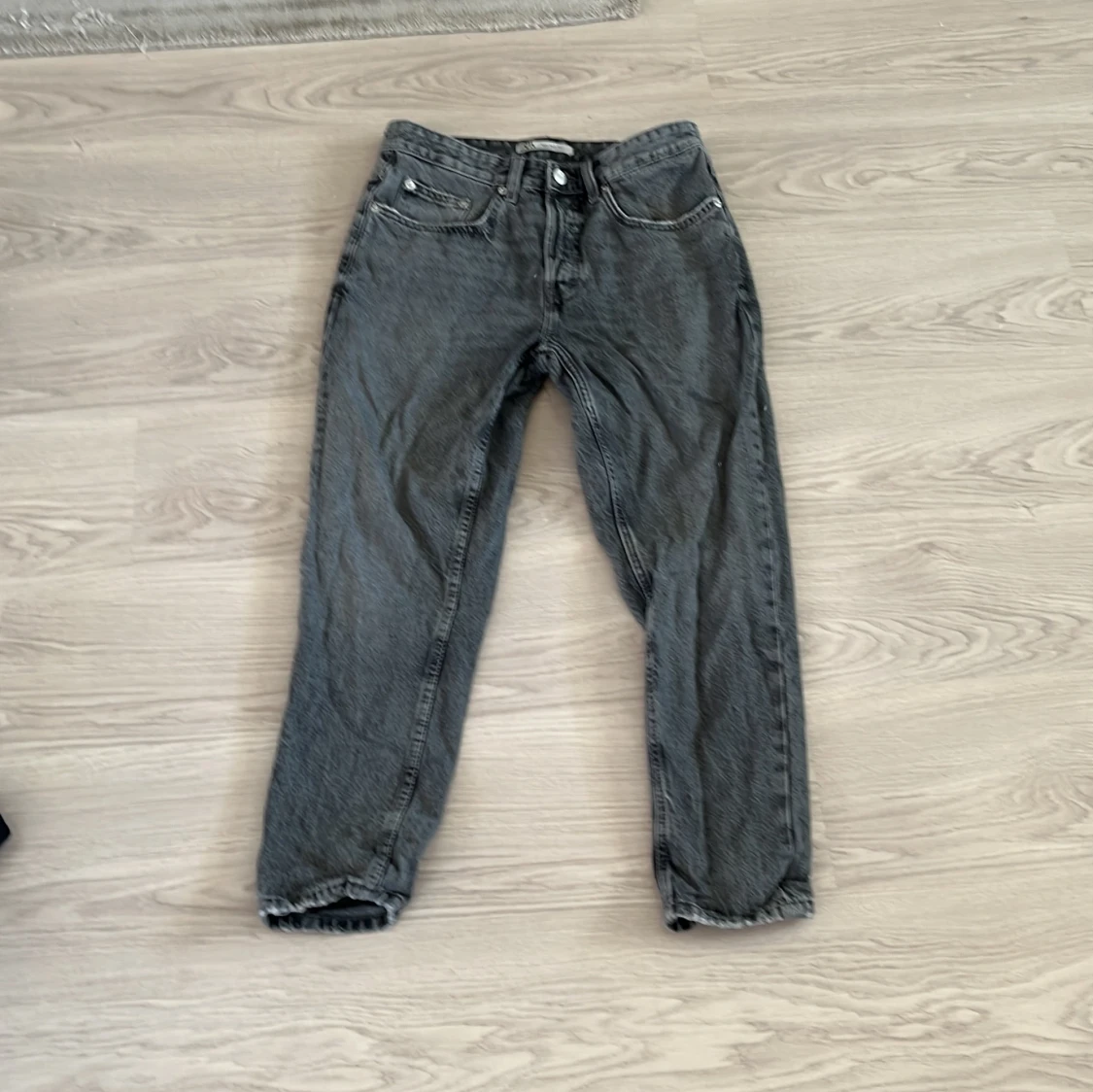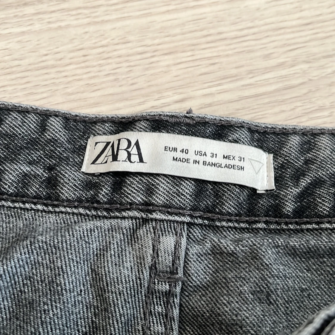 Säljer ett par grå jeans från Zara. De har en klassisk fyrficksdesign och är tillverkade i ett slitstarkt denimtyg. Perfekta för en avslappnad stil.