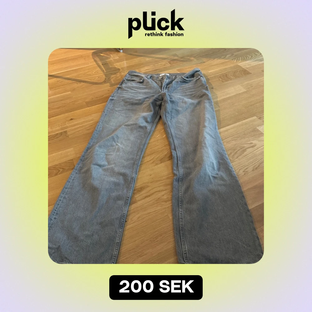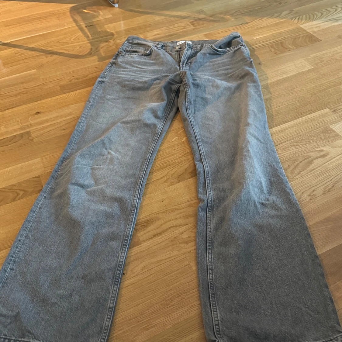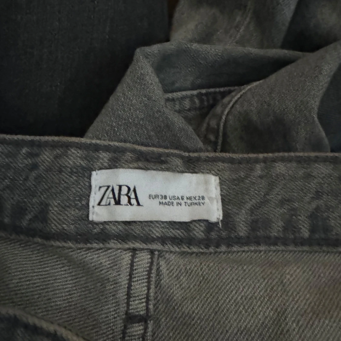 Säljer ett par grå jeans från Zara i storlek EUR 38. De har en loose passform och är perfekta för en avslappnad stil. Jeansen är i bra skick och passar både till vardags och festligare tillfällen.