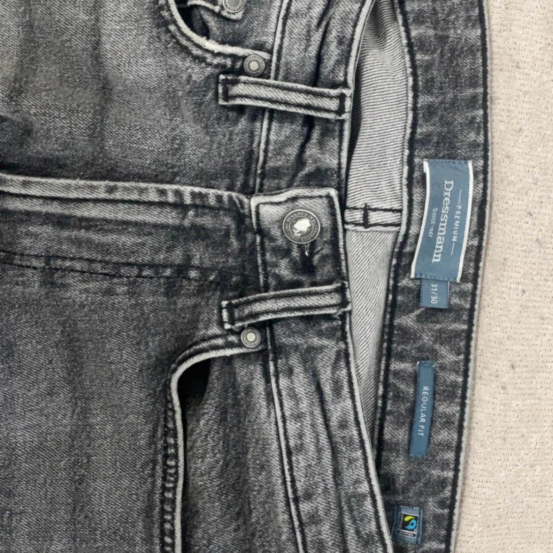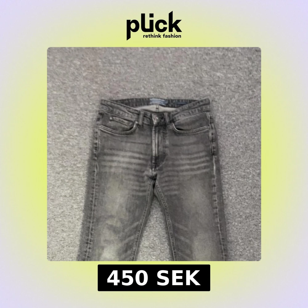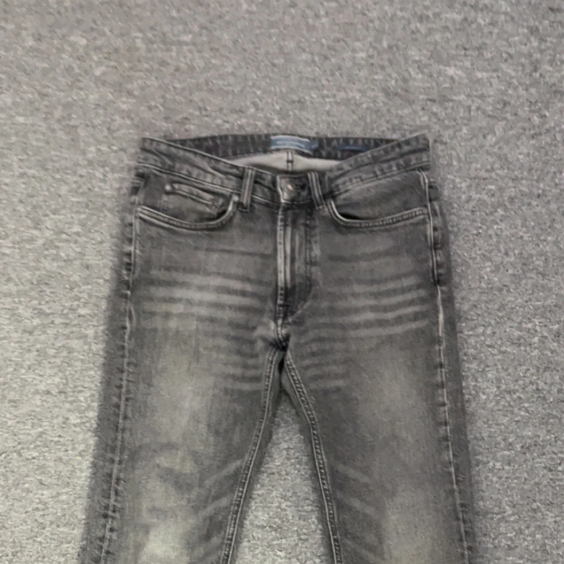 Snygga grå jeans med slitna detaljer och råa, fransiga benslut. Jeansen har klassisk femficksdesign och dragkedjegylf. Perfekta för en avslappnad och trendig look.