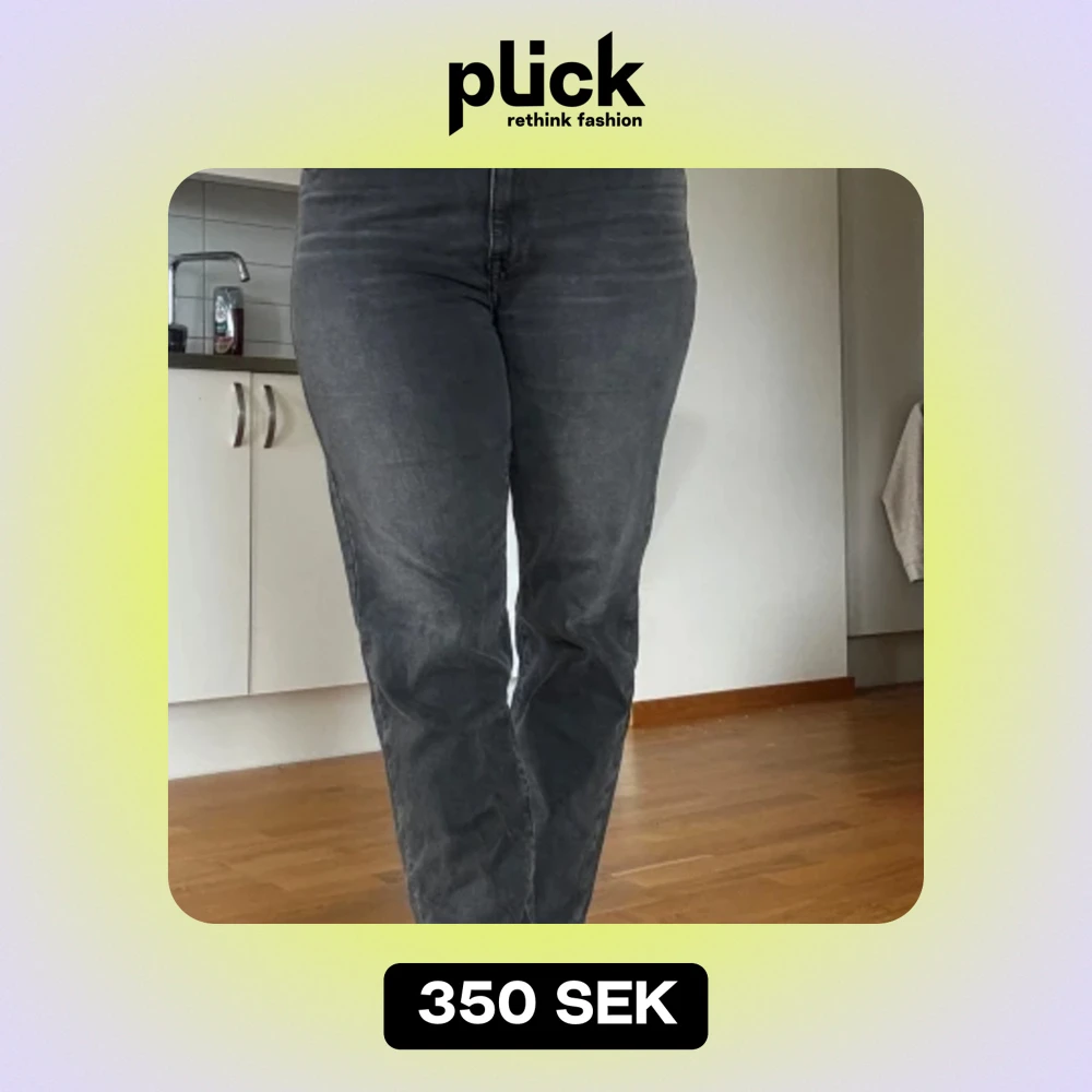 Säljer ett par snygga grå jeans i bra skick. De är högmidjade och har en straight passform som ger en klassisk look. Perfekta för både vardag och fest!