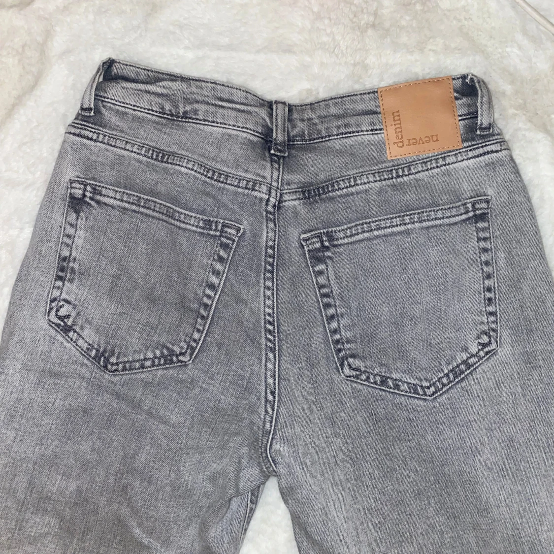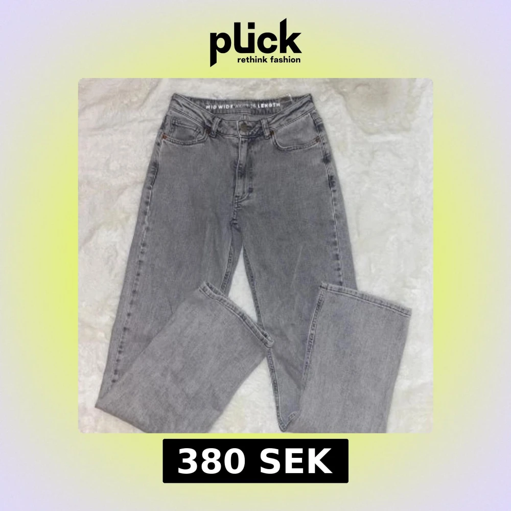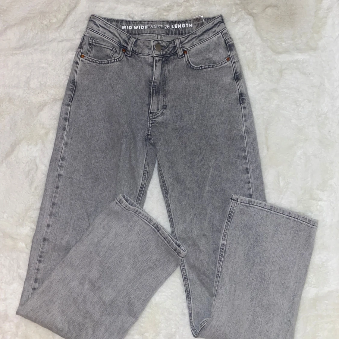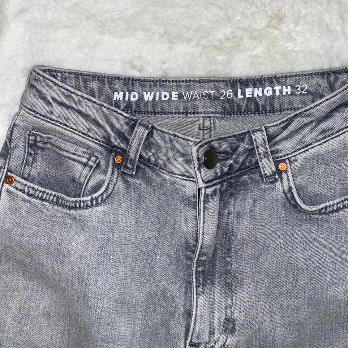 Snygga grå jeans från Bikbok med midwaist och en mid wide passform. Storlek 26, längd 32. Nypris: 700. Sitter fint där bak