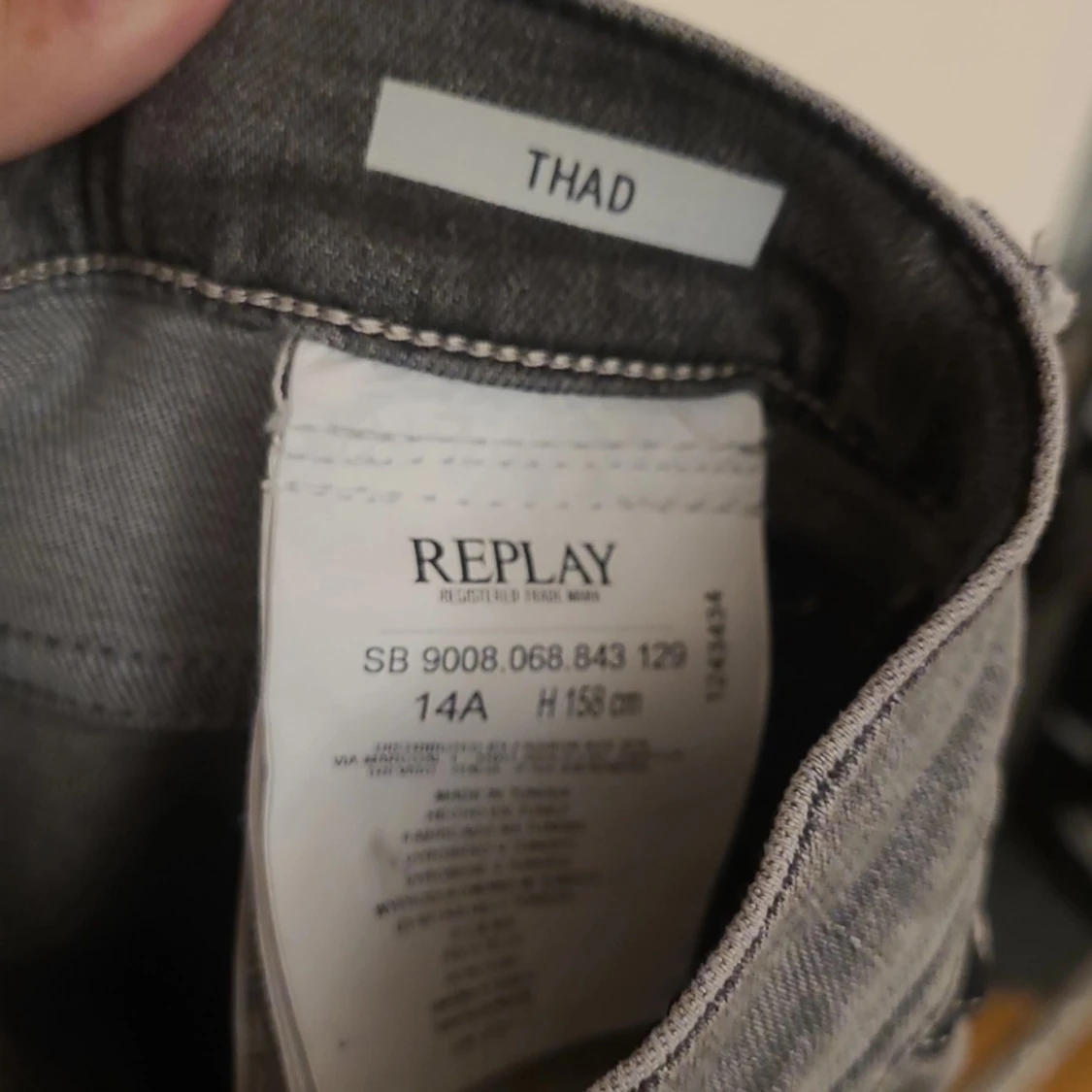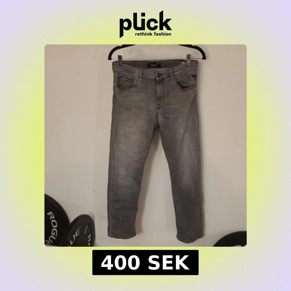 Säljer ett par grå jeans från Replay, modell Thad. Jeansen har klassisk femficksdesign, raka ben och snyggt tvättad finish. Passar dig som gillar en stilren look med lite edge. Perfekta till sneakers och hoodie.