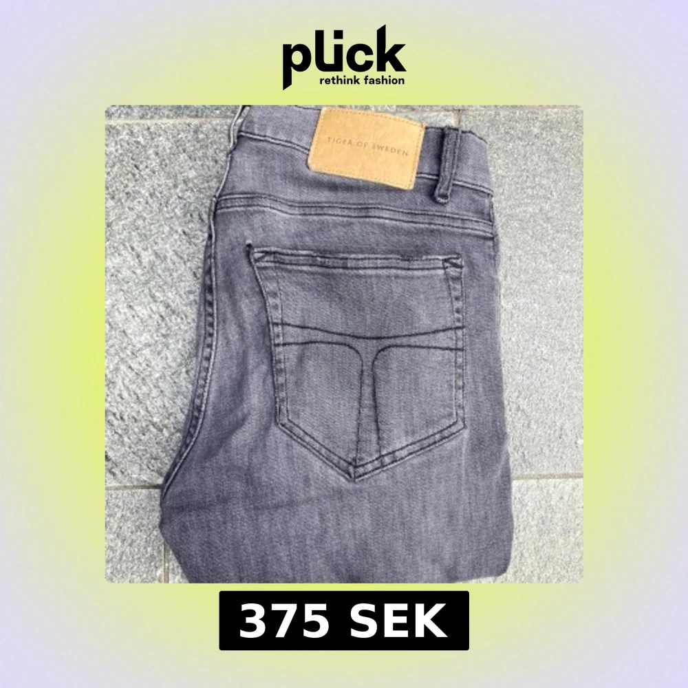 Feta grå jeans från Tiger of Sweden i modellen Evolve. Storlek 26 32. Skicket är mycket bra, med original slitningar (se bild 4&5). Nypriset ligger på ungefär 1700kr, mitt pris 375kr, ej hugget i sten. Hör av dig vid frågor eller funderingar.