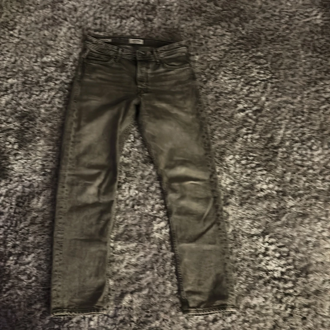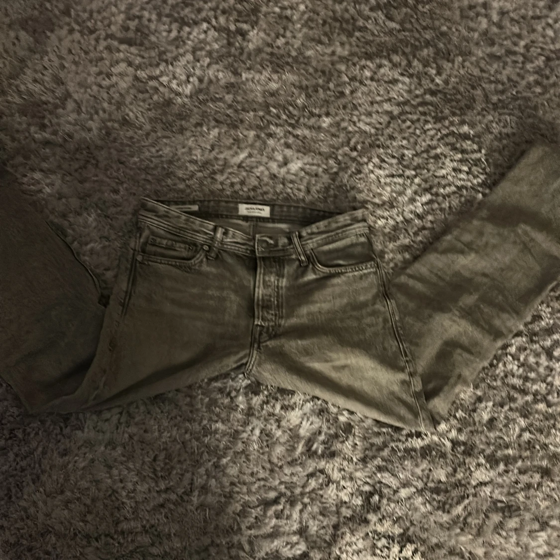 Snygga grå jeansbyxor med en klassisk femficksdesign. De har en rak passform och är perfekta för en avslappnad stil. Byxorna har en dragkedja och knapp framtill.