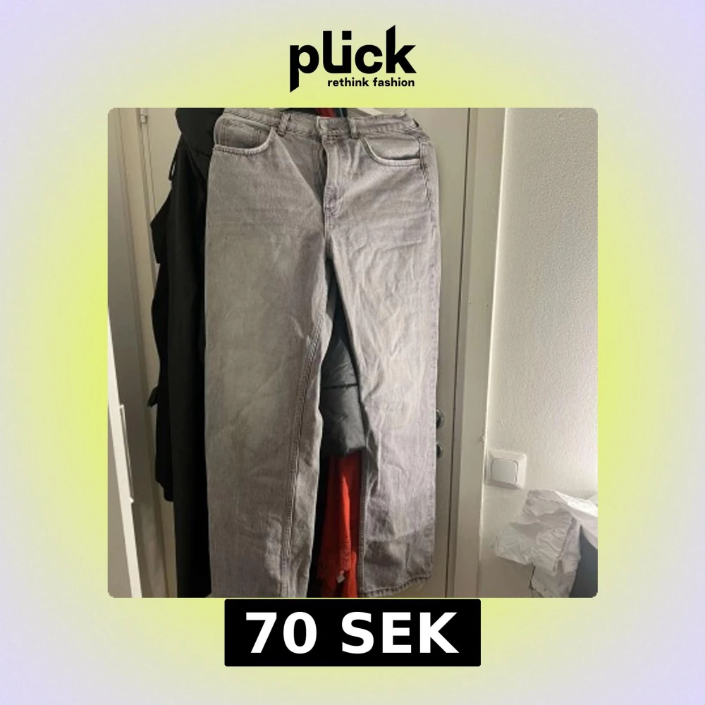 Snygga grå jeansbyxor med en klassisk design. De har en rak passform och är perfekta för en avslappnad stil. Skriv vid flera frågor eller intresse 💞