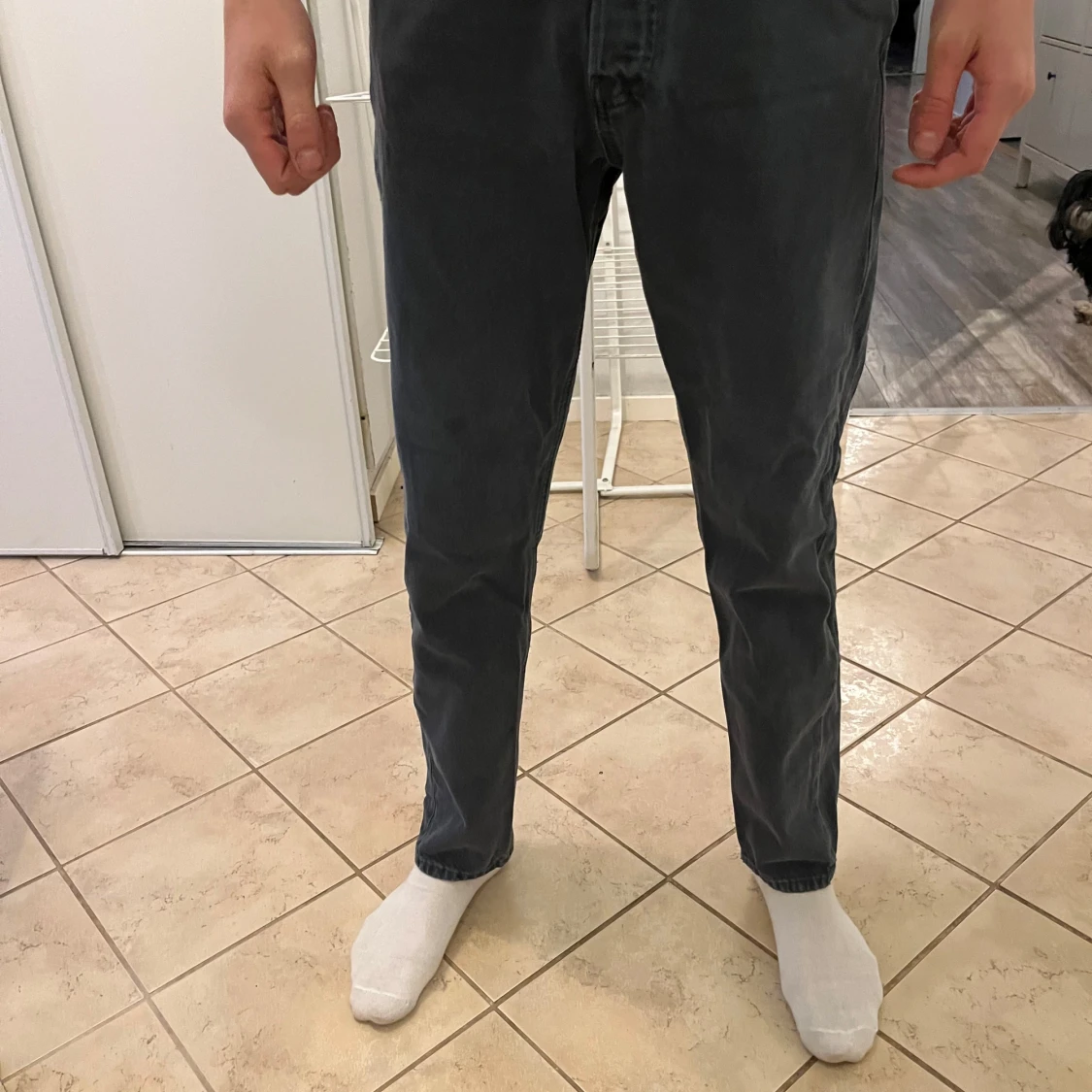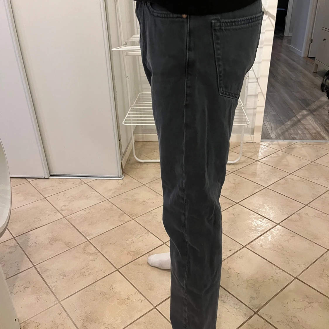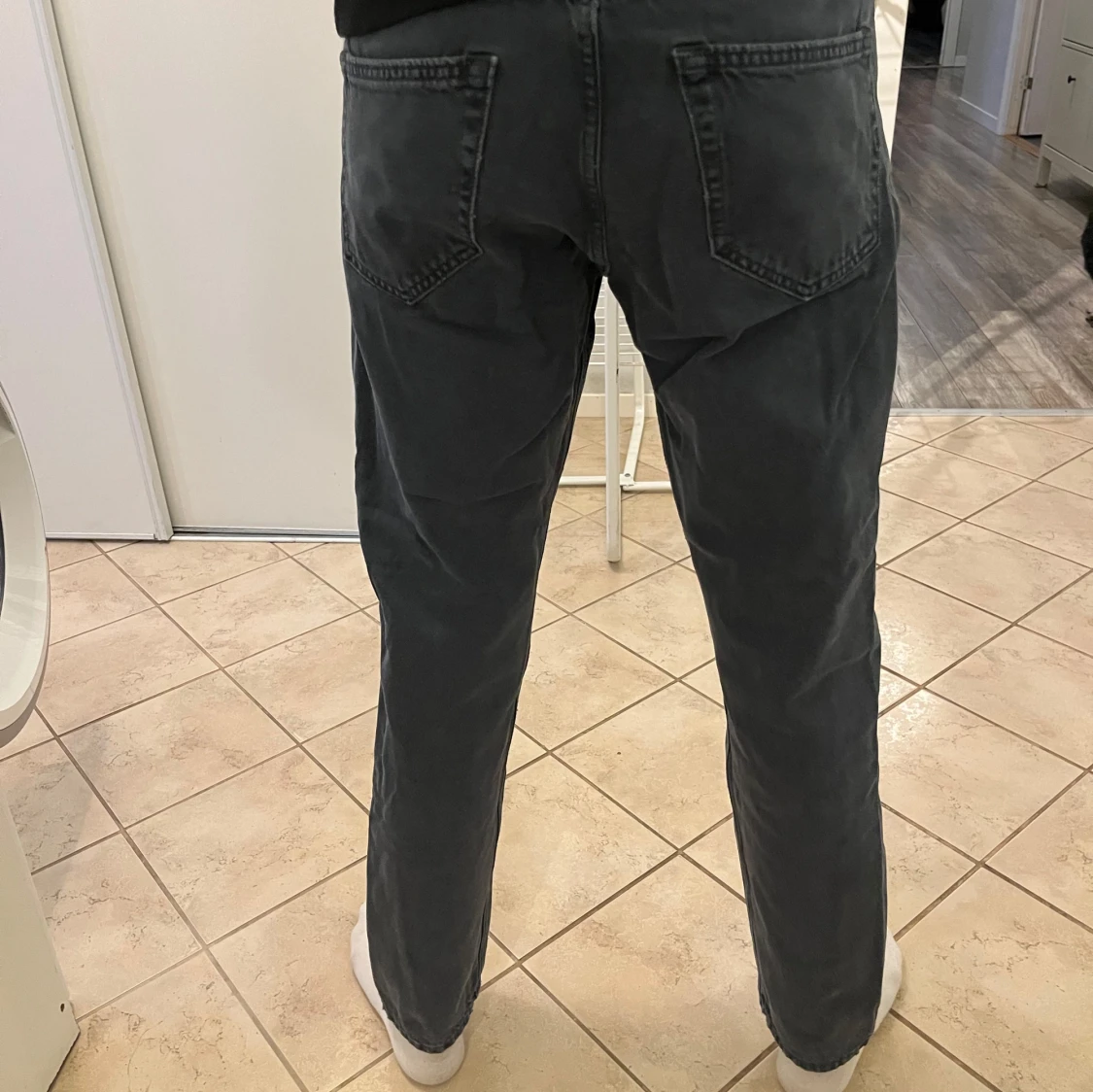 Snygga grå jeansbyxor med normal passform och midwaist. Perfekta för en stilren look, med klassiska femficksdetaljer och dragkedja. Passar bra till både vardag och mer uppklädda tillfällen. Använda bara en gång, så mycket fint skick.