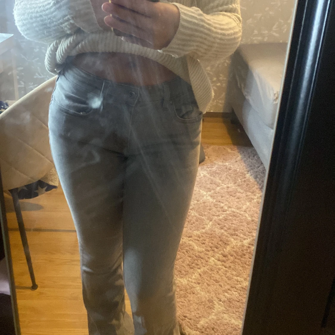 Säljer ett par grå jeansbyxor i bra skick. De har en normal passform och är perfekta för både vardag och fest. Byxorna är högmidjade och har en klassisk stil som passar till det mesta. Perfekta för höst och vår!