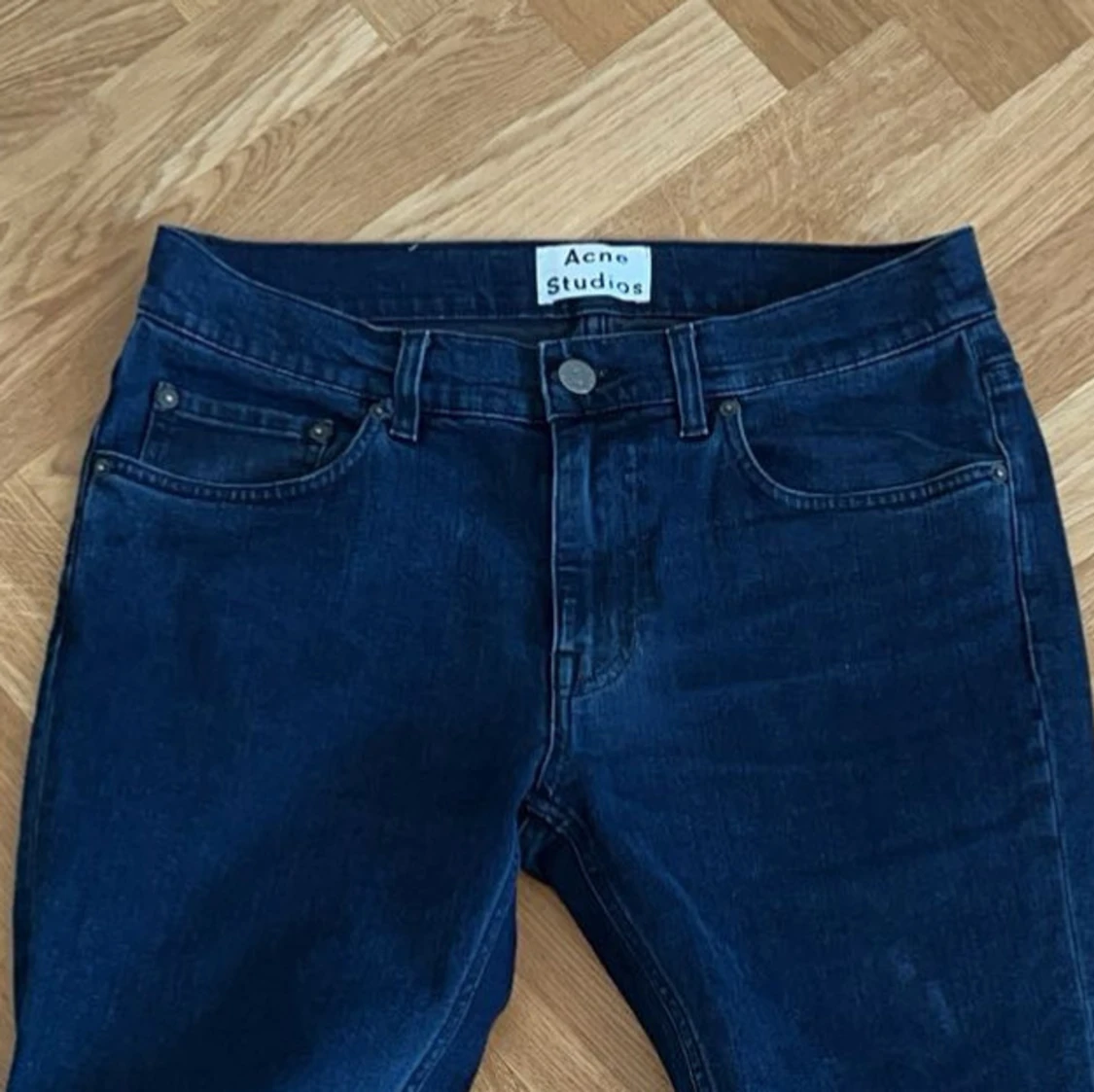 Säljer ett par klassiska grå jeans från Acne Studios. Byxorna har fem fickor, raka ben och normal passform. Perfekta för dig som gillar stilrena och tidlösa jeans. Stängs med dragkedja och knapp.