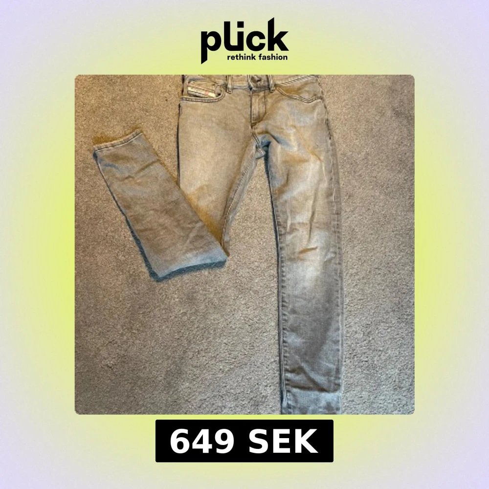 Säljer ett par grå jeansbyxor från Diesel Industry med klassisk femficksdesign och raka ben. Byxorna har diskreta slitningar och logotypdetalj vid fickan. Perfekta för en avslappnad och stilren look.