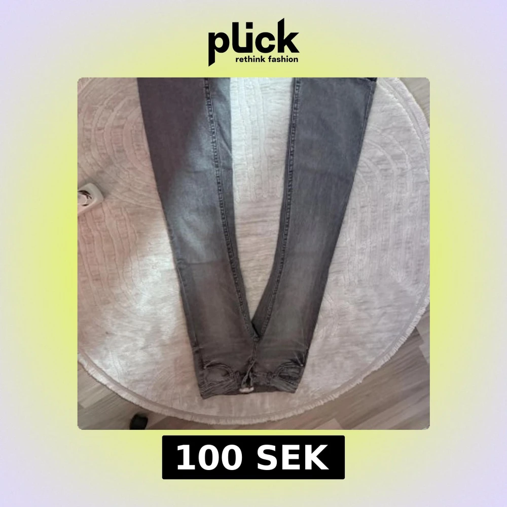 Snygga grå jeansbyxor från Ginatricot i storlek 152. Modellen har smal passform med raka ben och klassisk femficksdesign. Jeansen är tillverkade i mjukt denimtyg och har knapp och dragkedja framtill.