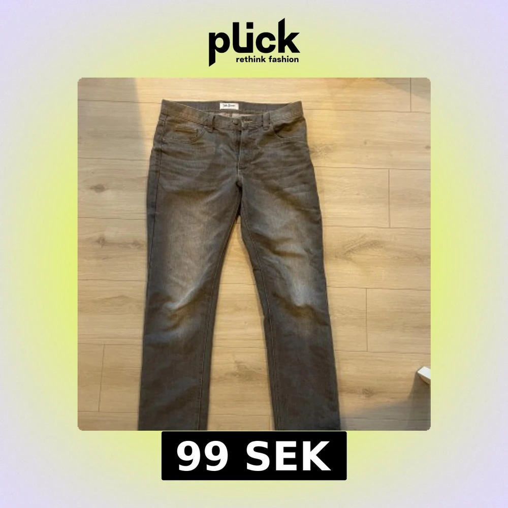 Snygga grå jeansbyxor från John Baner i klassisk femficksmodell. Byxorna har raka ben och normal passform, med diskreta slitningar och detaljerade bakfickor. Perfekta för dig som gillar stilrena och enkla jeans i en neutral färg.