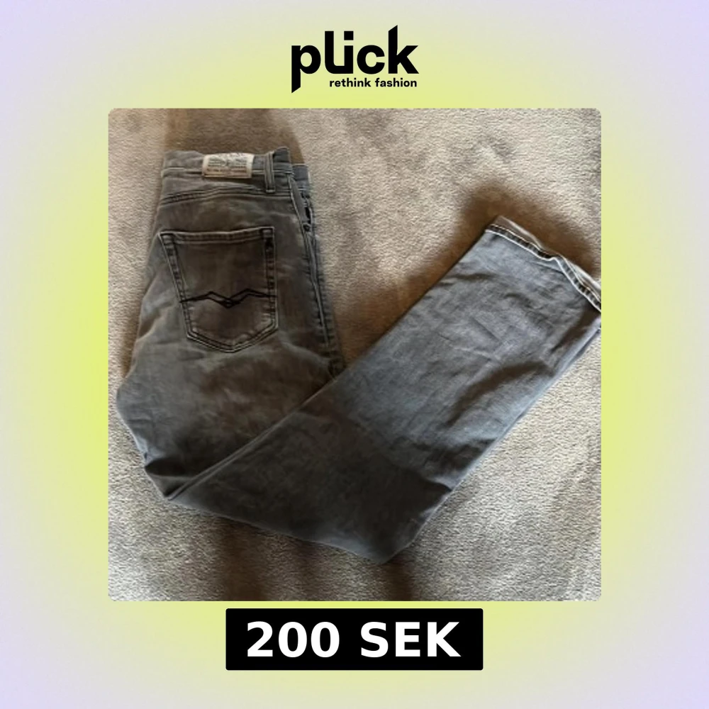 Säljer ett par grå jeansbyxor från Replay, modell Thad. Byxorna har raka ben, klassisk femficksdesign och detaljerade bakfickor. Perfekta för dig som gillar en stilren och enkel look. Storlek 14 år 158cm men skulle säga att de passar större. Aldrig använda.