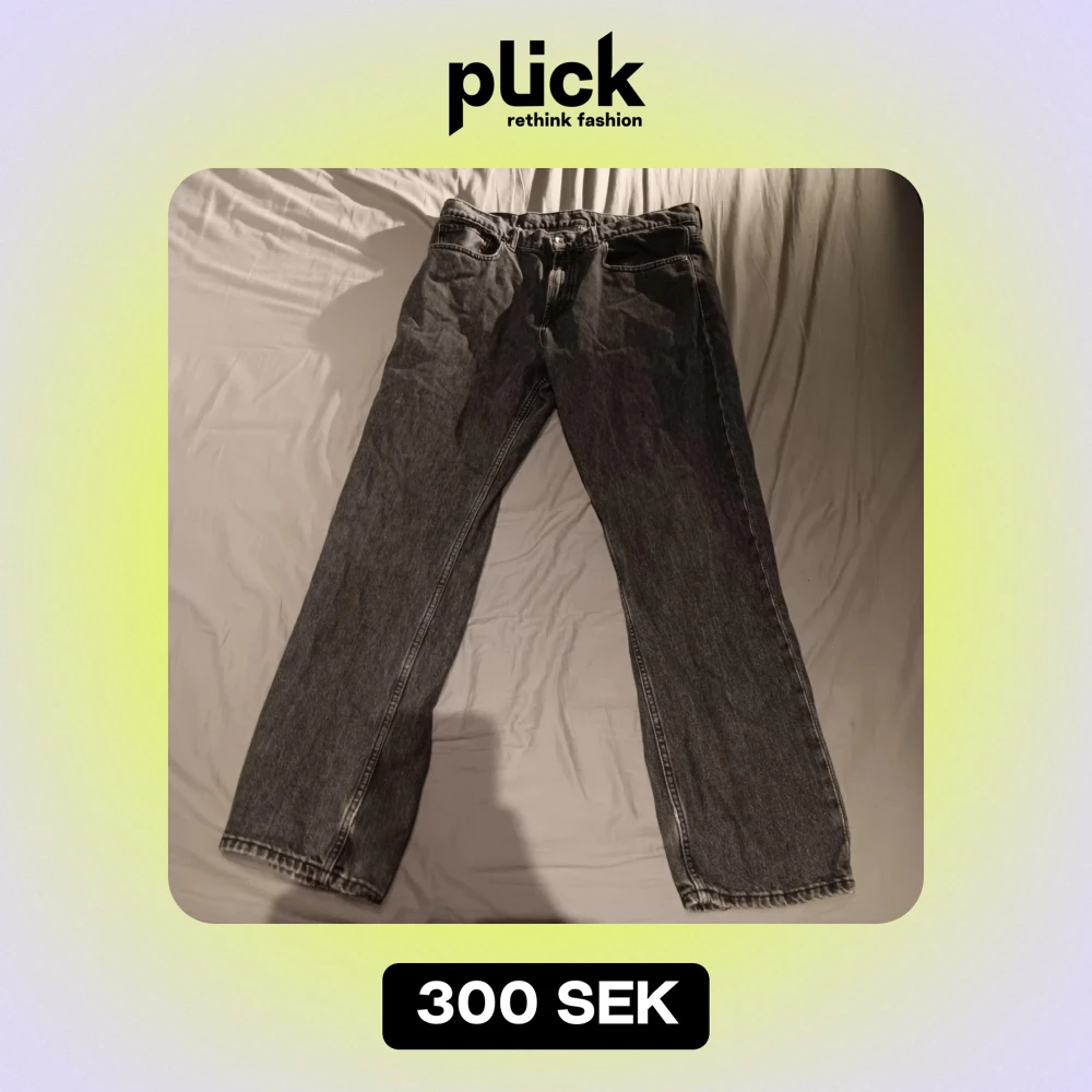Säljer ett par grå jeansbyxor från Vailent i storlek M. Byxorna har en klassisk straight passform och är i bra skick. Perfekta för vardagsbruk med en stilren look. De har en förbättringssyning på ena benet men syns knappt. Säljes då dem är för stora för mig.