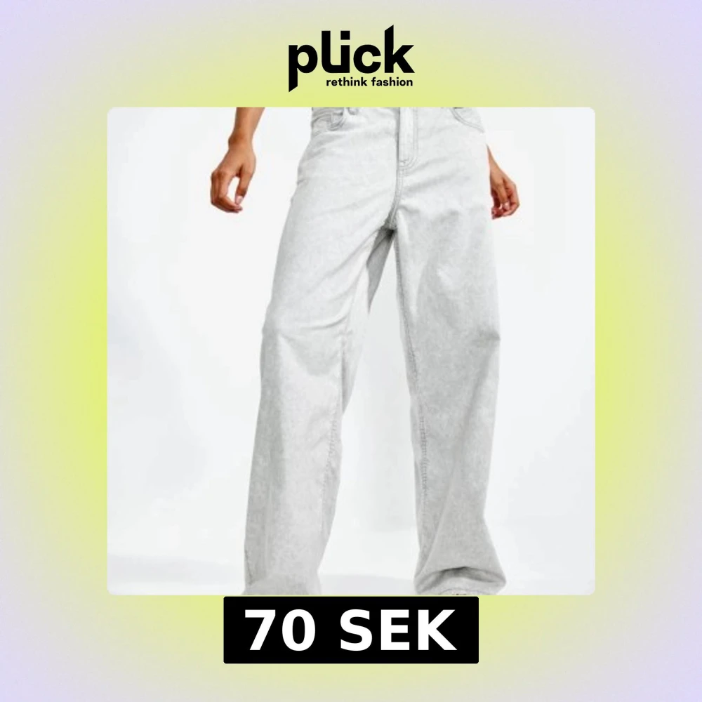 Snygga grå jeansbyxor från H&M/Divided med en loose passform. Byxorna har en hög midja och raka ben, vilket ger en avslappnad stil. Perfekta för en trendig look.