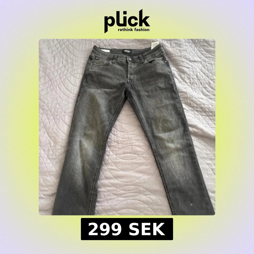 Säljer ett par grå jeansbyxor i rak modell med klassisk femficksdesign. Jeansen har en snygg tvättad look och normal passform. Perfekta till sneakers och hoodie för en chill stil.