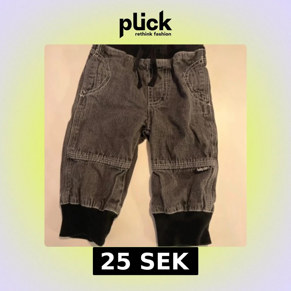 Grå jeansbyxor från Baby Star med svarta muddar i midja och benslut. Byxorna har snörning i midjan, vita kontrastsömmar och två framfickor. Perfekta för en chill och bekväm stil till de minsta.