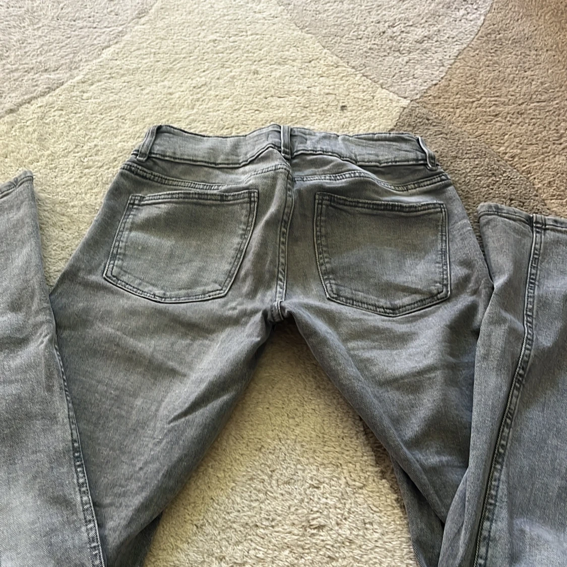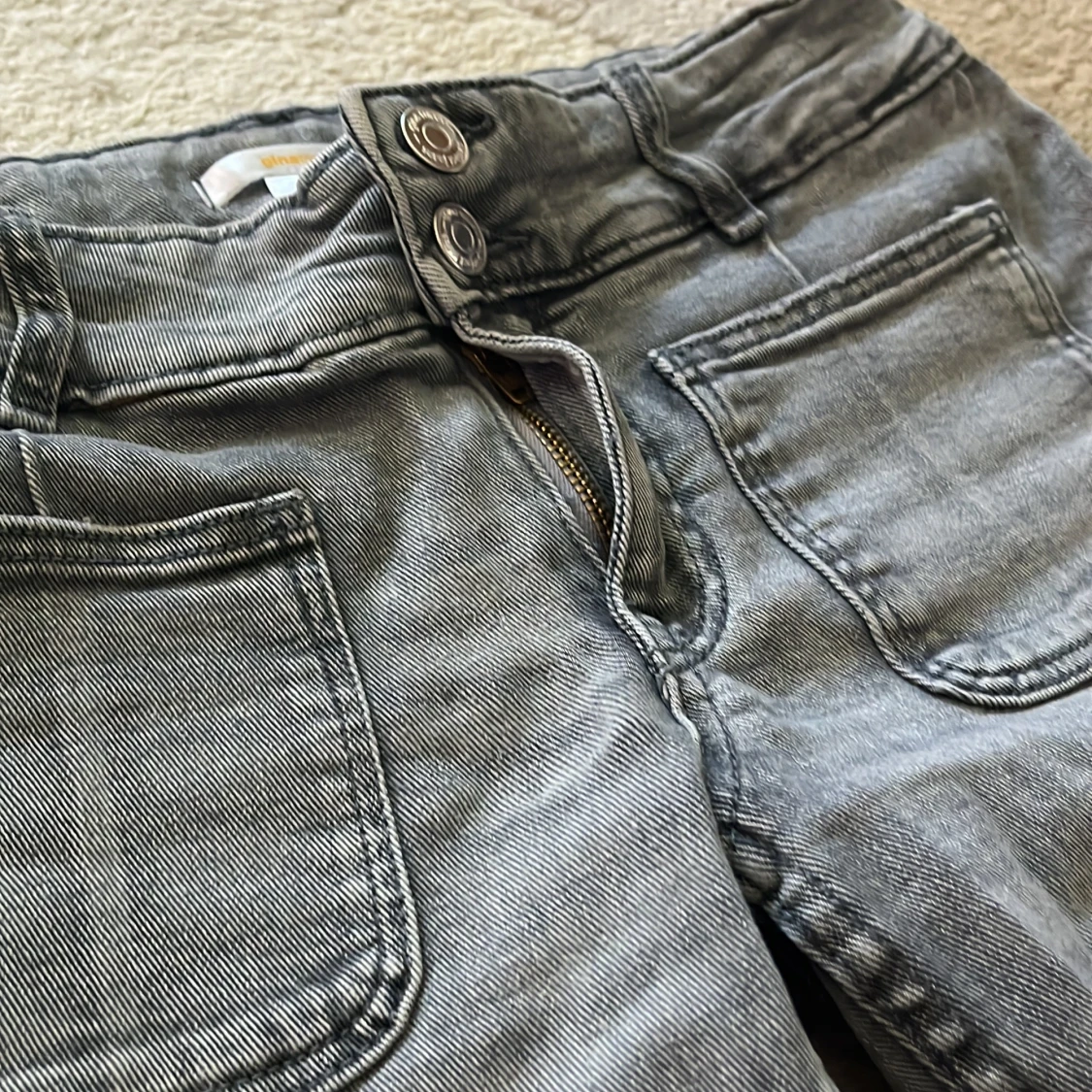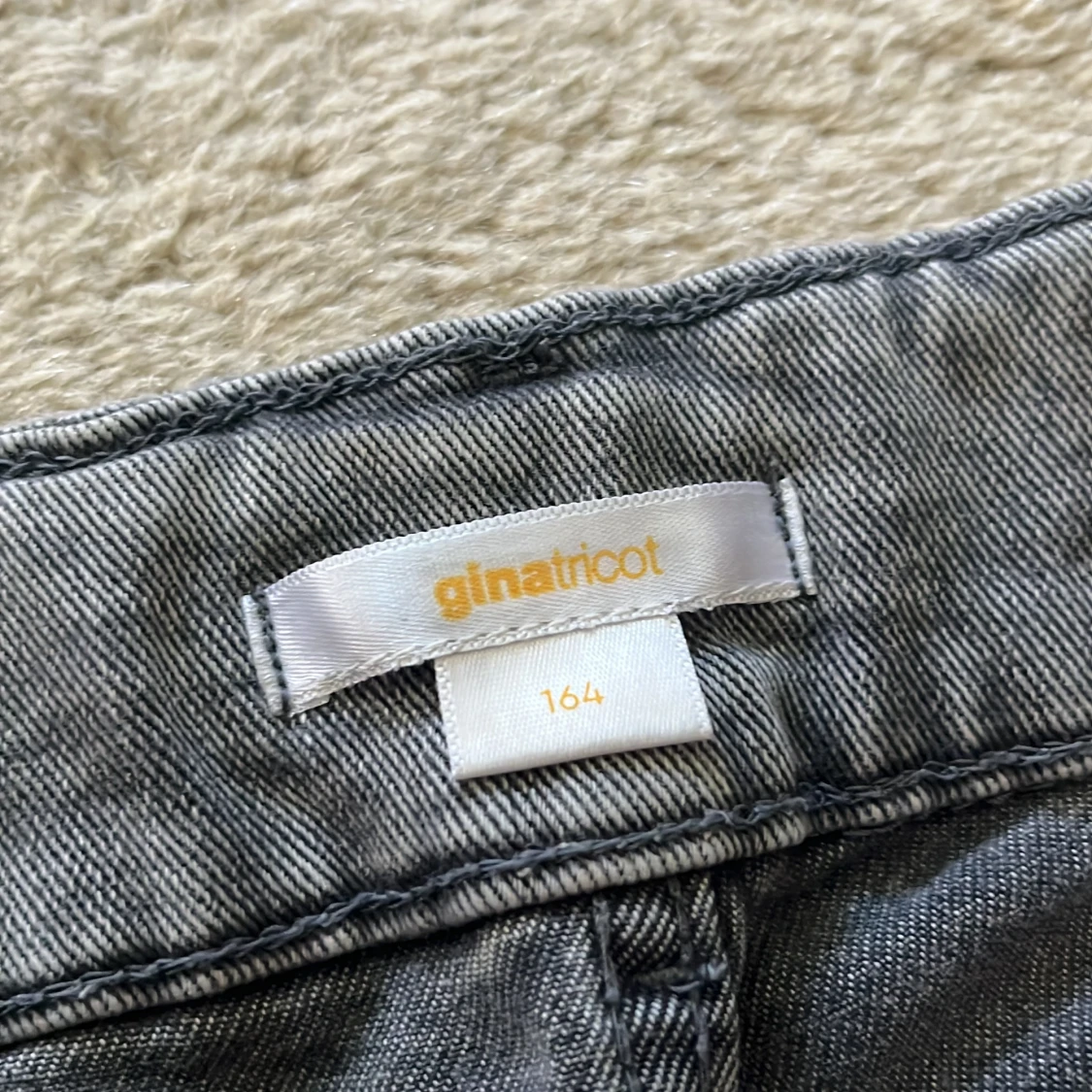 Snygga grå jeansbyxor från Gina Young med raka ben och stora fyrkantiga fickor både fram och bak. Byxorna har dubbla knappar i midjan och dragkedja. Jeansen är i skönt mjukt jeans tyg