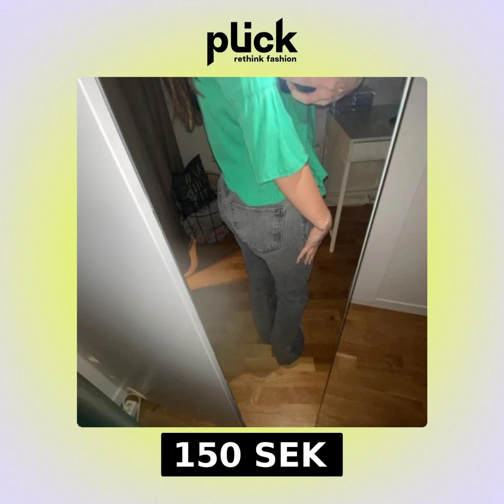 Snygga grå jeansbyxor med en klassisk design. Byxorna har en rak/utsvängd passform och är perfekta för en avslappnad stil. Midjemått 34 inrebenslängden 80. De är midrise)