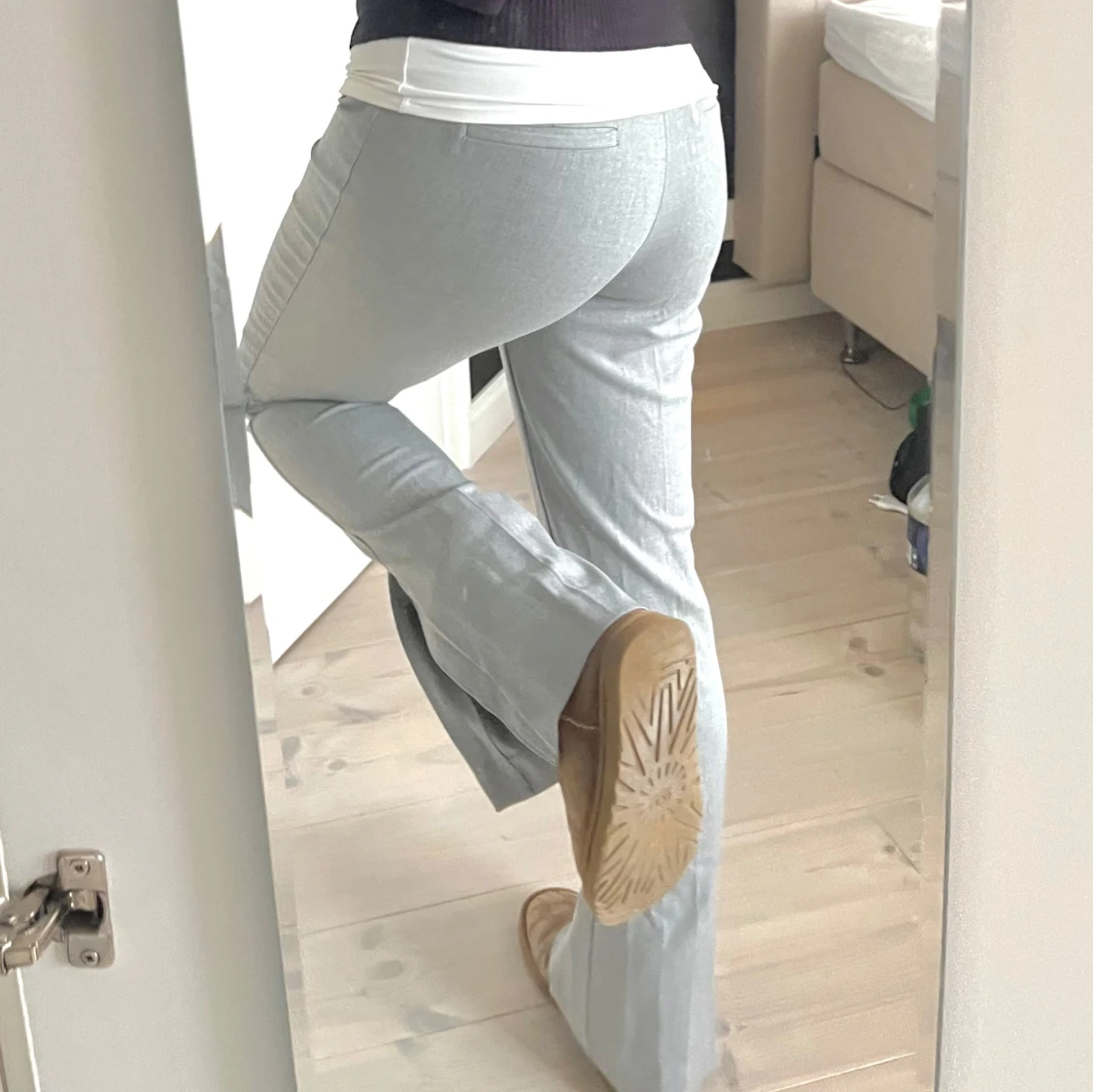 Snygga grå kostymbyxor med bootcut från Zara! Mycket bara skick utan tecken på användning! Jag är 175