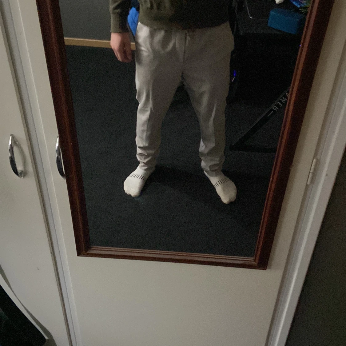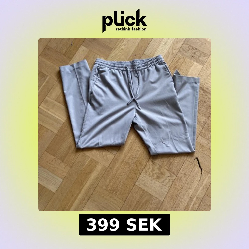 Säljer ett par bekväma kostymbyxor med elastisk midja och snörning. Perfekta för en avslappnad stil. Byxorna har en normal passform och är tillverkade i ett mjukt material.