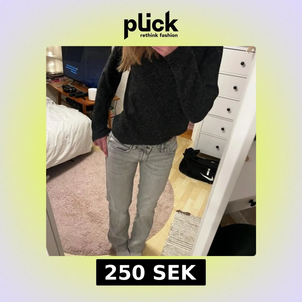 Säljer ett par snygga grå jeans från Nelly. De har en låg midja och raka ben. Säljer för att de ej kommer till användning och använt ett fåtal gånger💗är 165 och kom gärna med prisförslag. Nypris: 600kr