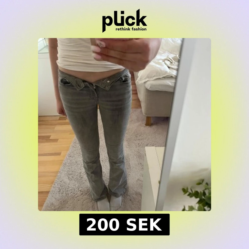 Säljer ett par grå jeansbyxor som är mid waist, säljer för att de är för små i midjan. I storlek 32