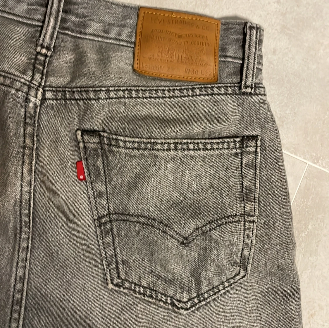 Säljer ett par grå Levi's 501 jeans med klassisk rak passform. Riktigt fräsha passar till de mesta. Hör av dig vid frågor eller mer bilder!!!