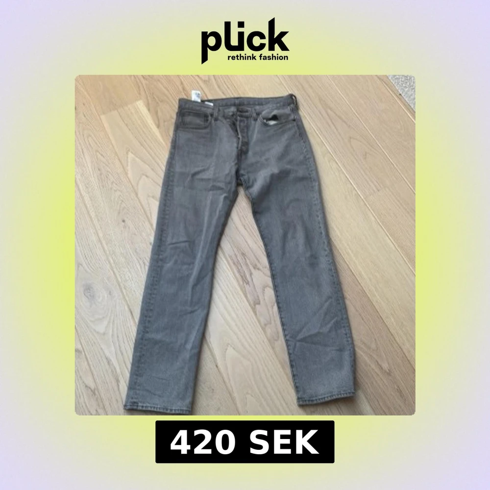Säljer ett par grå Levi's 501 jeans i klassisk rak modell. Jeansen har fem fickor, knappgylf och den ikoniska läderpatchen bak i midjan. Perfekt för dig som gillar en tidlös och avslappnad look. Materialet är slitstarkt denim i bomull.
