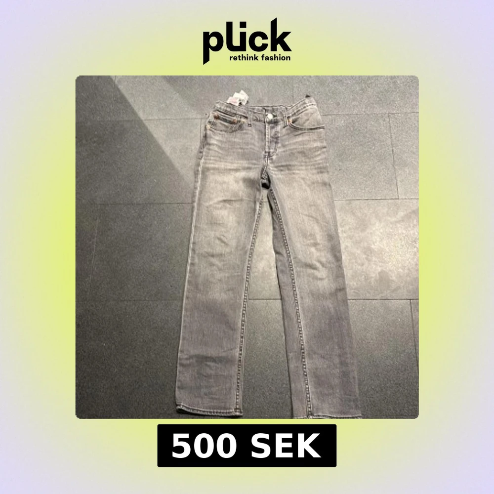 Säljer ett par klassiska grå Levis 501 jeans. De har en straight passform och är tillverkade i bomull. Perfekta för en avslappnad stil med en tidlös look.