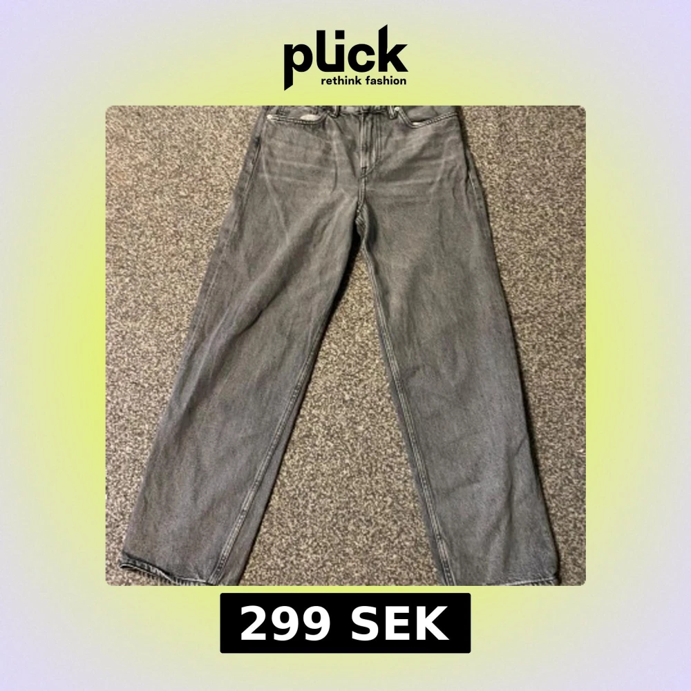 Säljer ett par grå jeans från H&M i loose fit-modell i storlek 29/32. Byxorna har klassisk femficksdesign, raka ben och normal midja. Har endast användt dom 1 gång och säljer eftersom jag ha växt ur dom och säljer eftersom jag ej använder dom