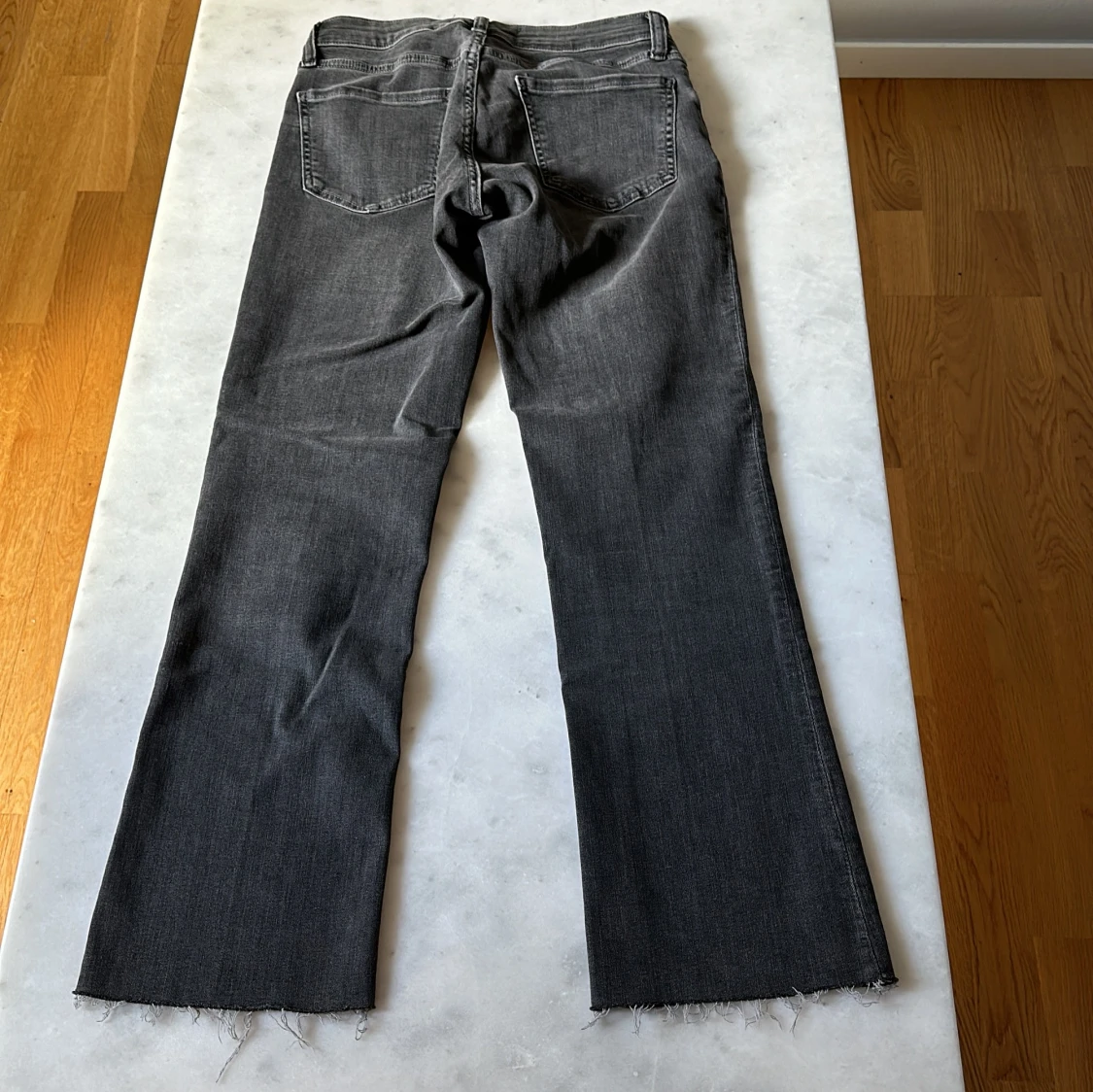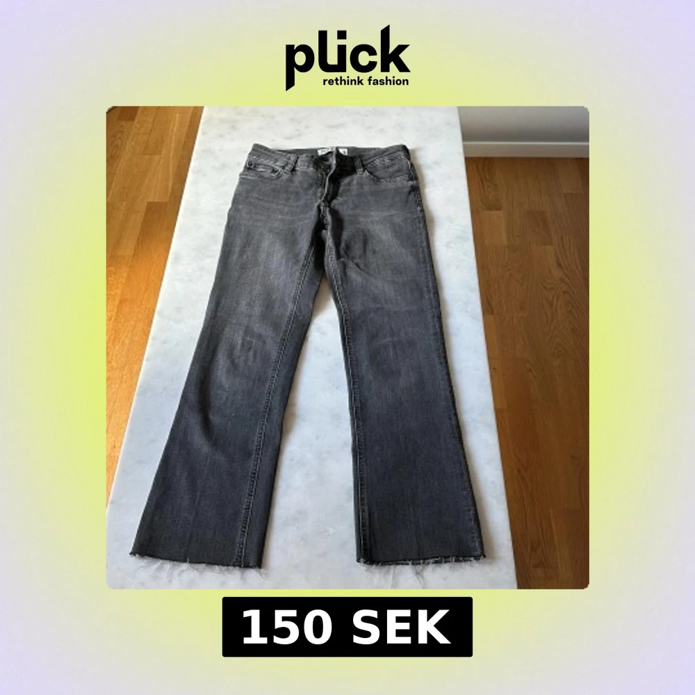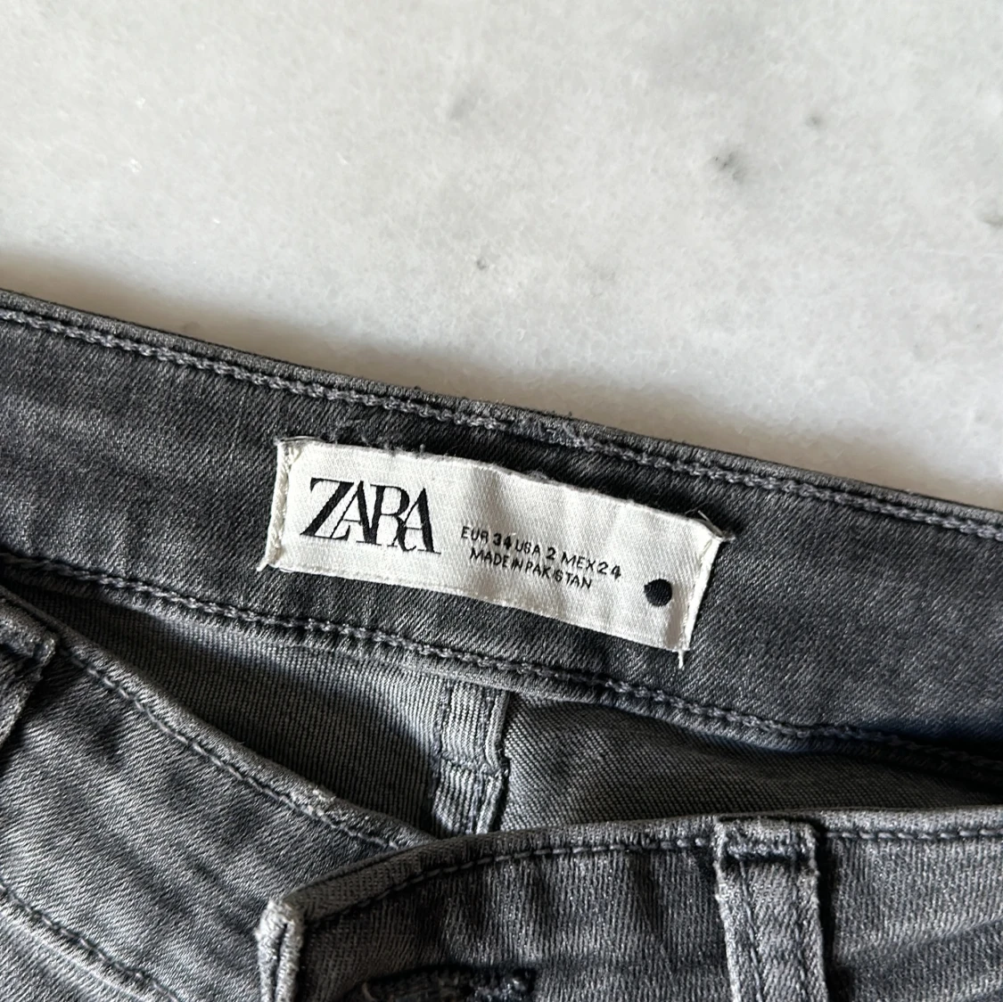 Snygga gråa lågmidjade mid flare jeans från Zara.
