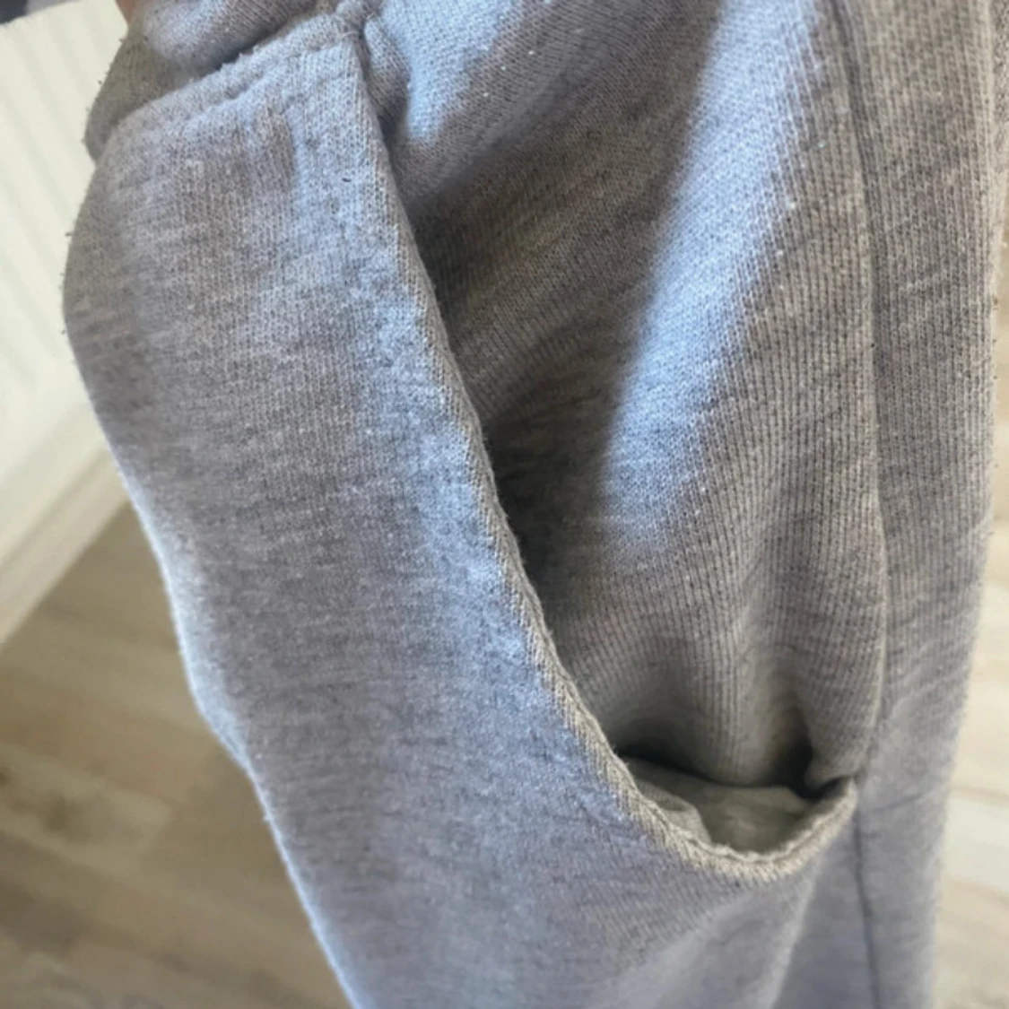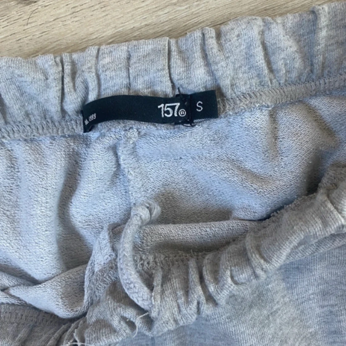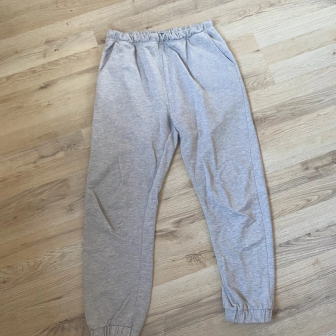 Säljer ett par klassiska grå mjukisbyxor från 157 med resår i midjan och vid bensluten. Byxorna har sidfickor och är perfekta för en avslappnad stil. Mjukt bomullsmaterial som är skönt att ha på sig.