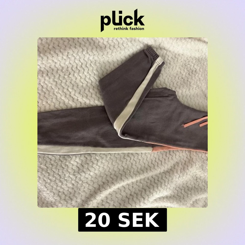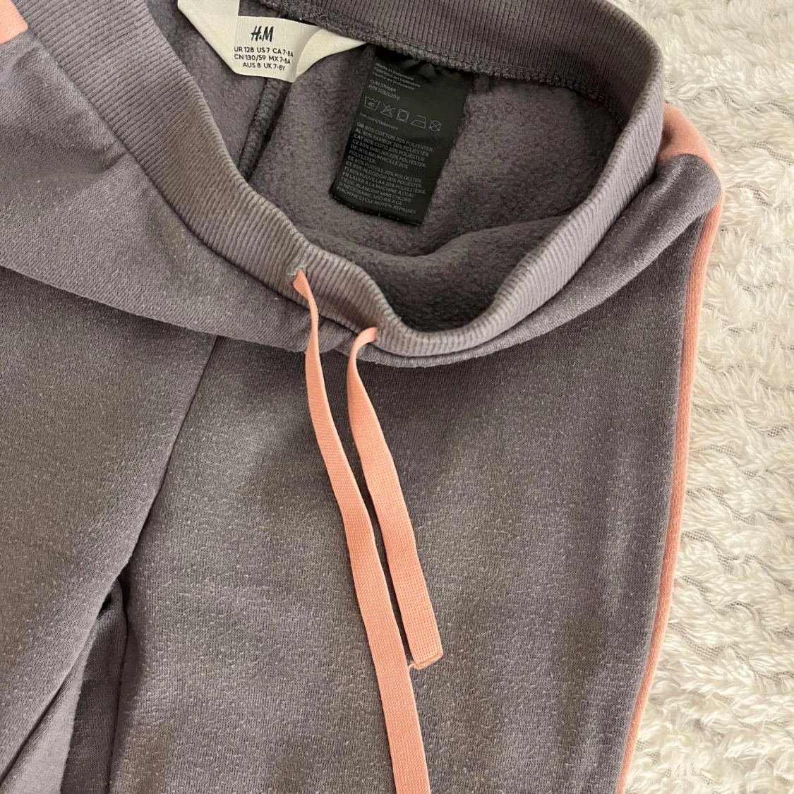 Säljer ett par grå mjukisbyxor från H&M med rosa snörning i midjan. Byxorna har en bekväm passform och är perfekta för en avslappnad stil. De har elastisk midja och ribbade muddar vid bensluten.