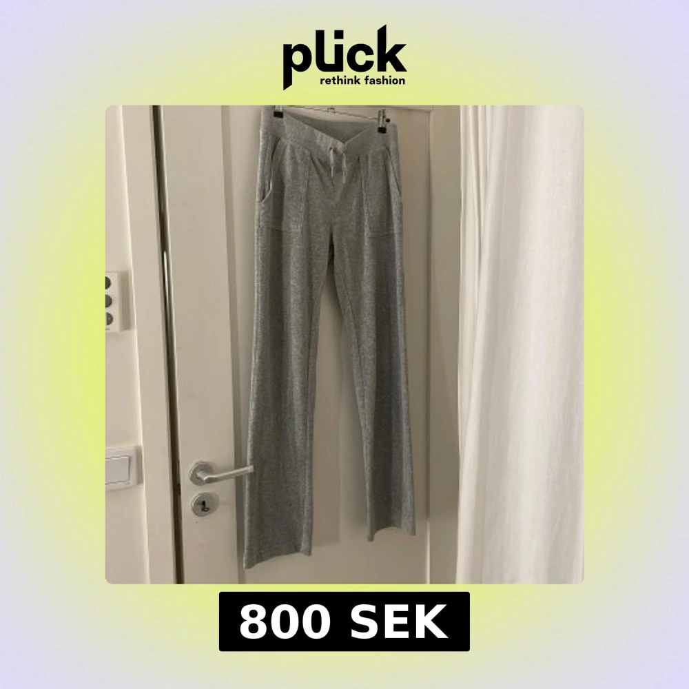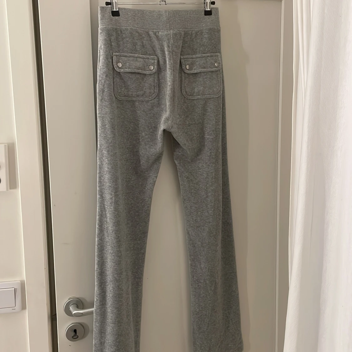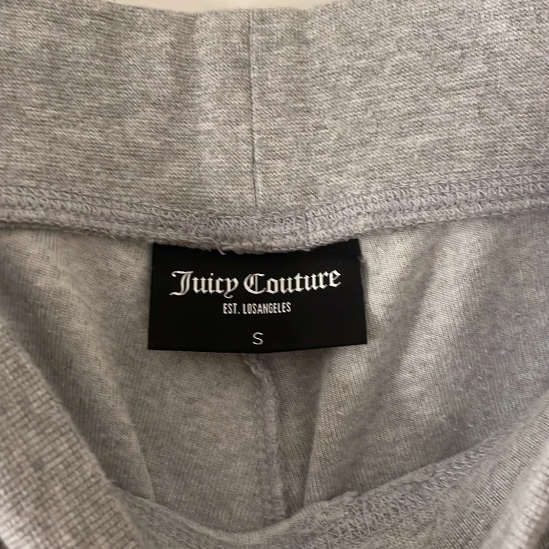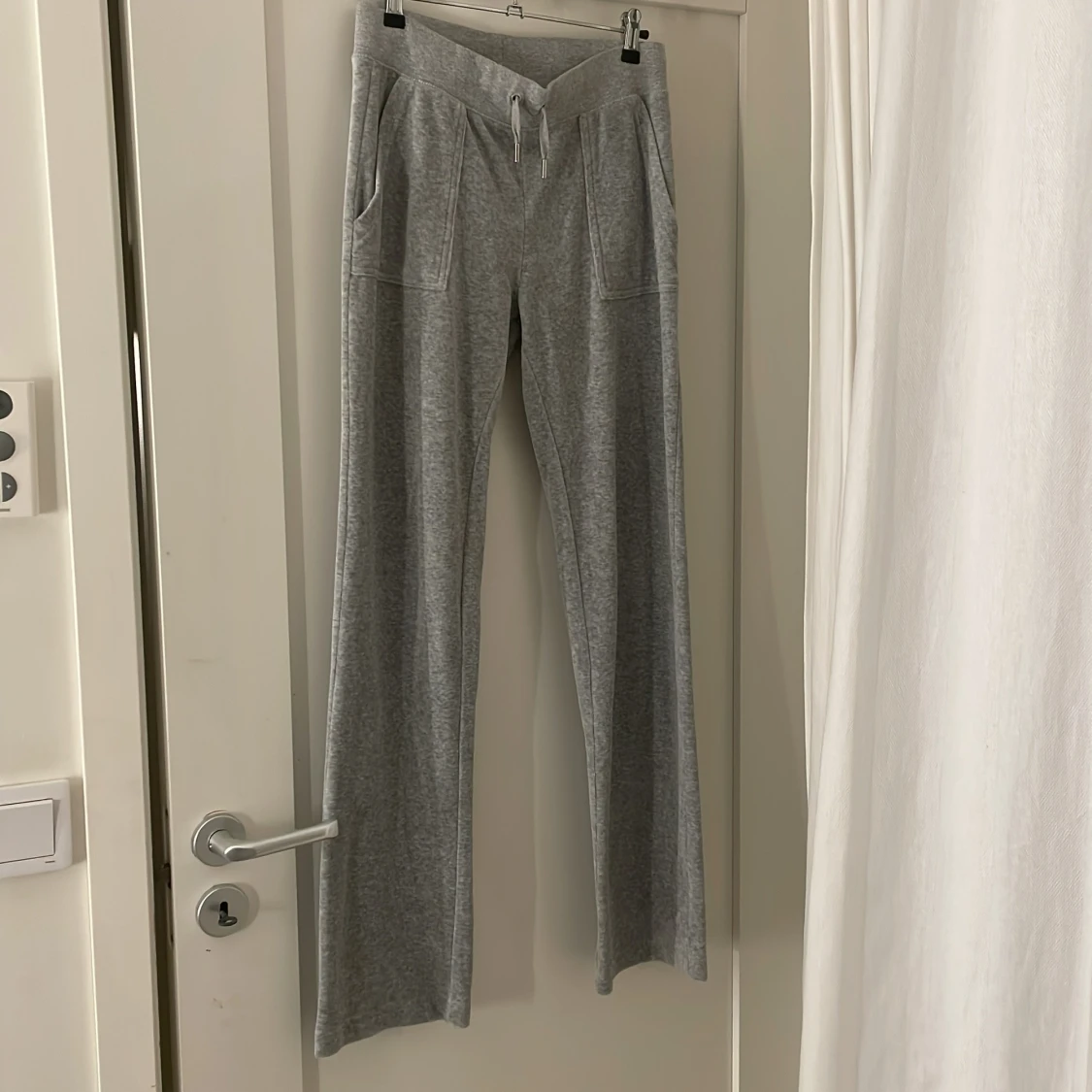 Snygga grå mjukisbyxor från Juicy Couture med snörning i midjan och fickor både fram och bak. Perfekta för en avslappnad stil.