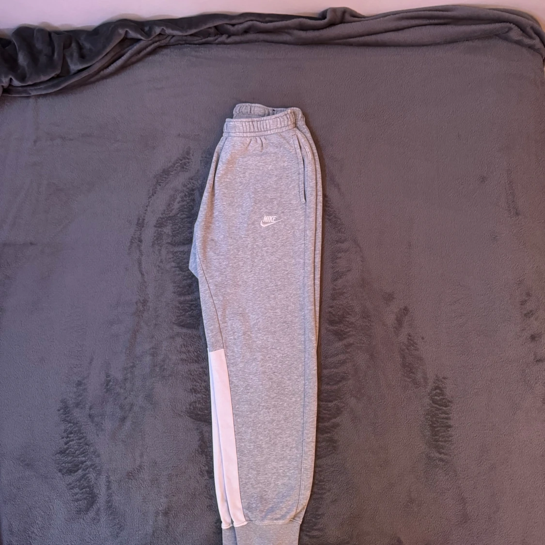 Feta grå vita nike mjukisbyxor i mycket bra skick. storlek S