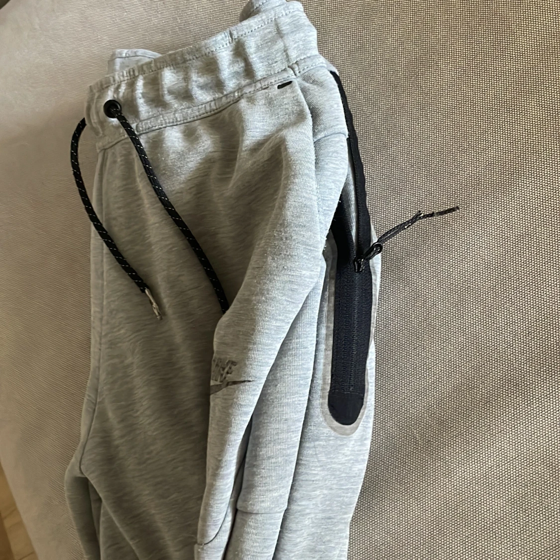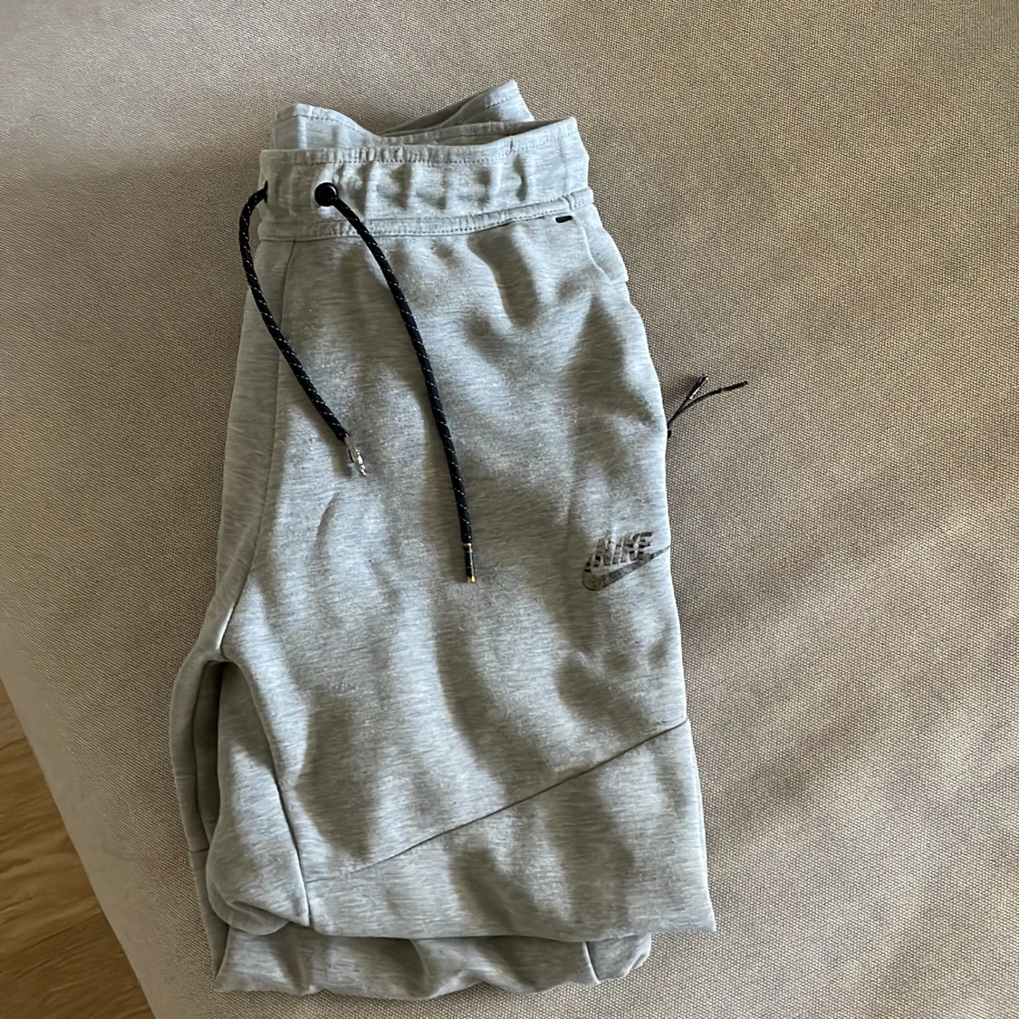 Grå mjukisbyxor från Nike med svart snörning i midjan och dragkedjeförsedda fickor på sidorna. Byxorna har en avslappnad passform och är tillverkade i mjukt bomullsmaterial. Nike-logga broderad på låret för en sportig look.