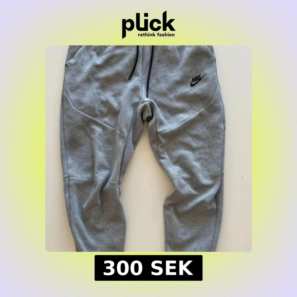 Snygga grå mjukisbyxor från Nike med svart logga på vänster ben. Byxorna har dragsko i midjan och är tillverkade i mjukt bomullsmaterial. Perfekta för chill eller träning, med en skön och avslappnad passform.