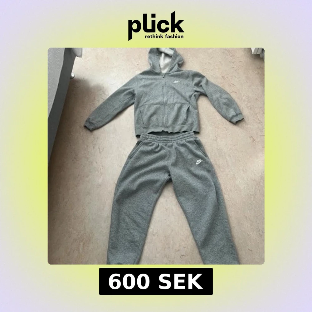 Gråa mjukisbyxor från Nike i storlek XL med broderad vit logga på benet. Byxorna har resår och snörning i midjan samt mjuk fleece på insidan för extra komfort. Perfekta för chill eller träning.