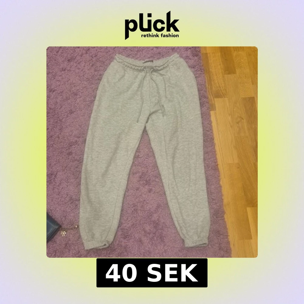 Gråa mjukisbyxor från Pull&Bear med elastisk midja och snörning. Byxorna har avslappnad passform och resår vid bensluten. Perfekta för chill dagar eller när du vill vara bekväm. Tillverkade i mjukt material.