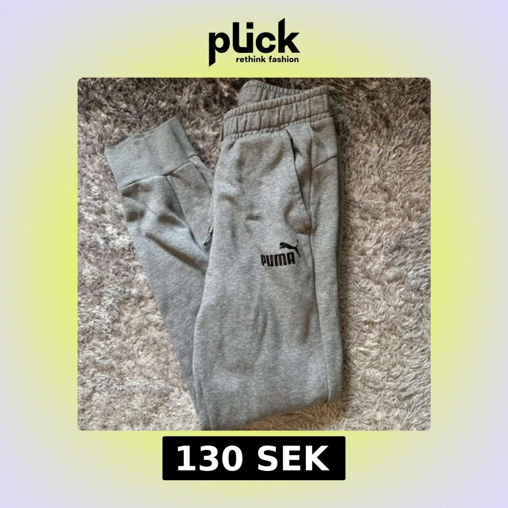 Snygga grå mjukisbyxor från Puma med elastisk midja och dragsko. Byxorna har ribbade muddar vid bensluten, två sidofickor och Puma-logga tryckt på låret. Perfekta för chill eller träning, tillverkade i mjuk bomullsblandning.