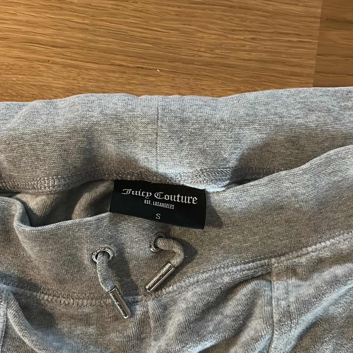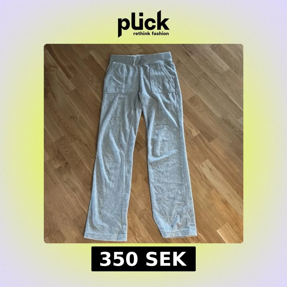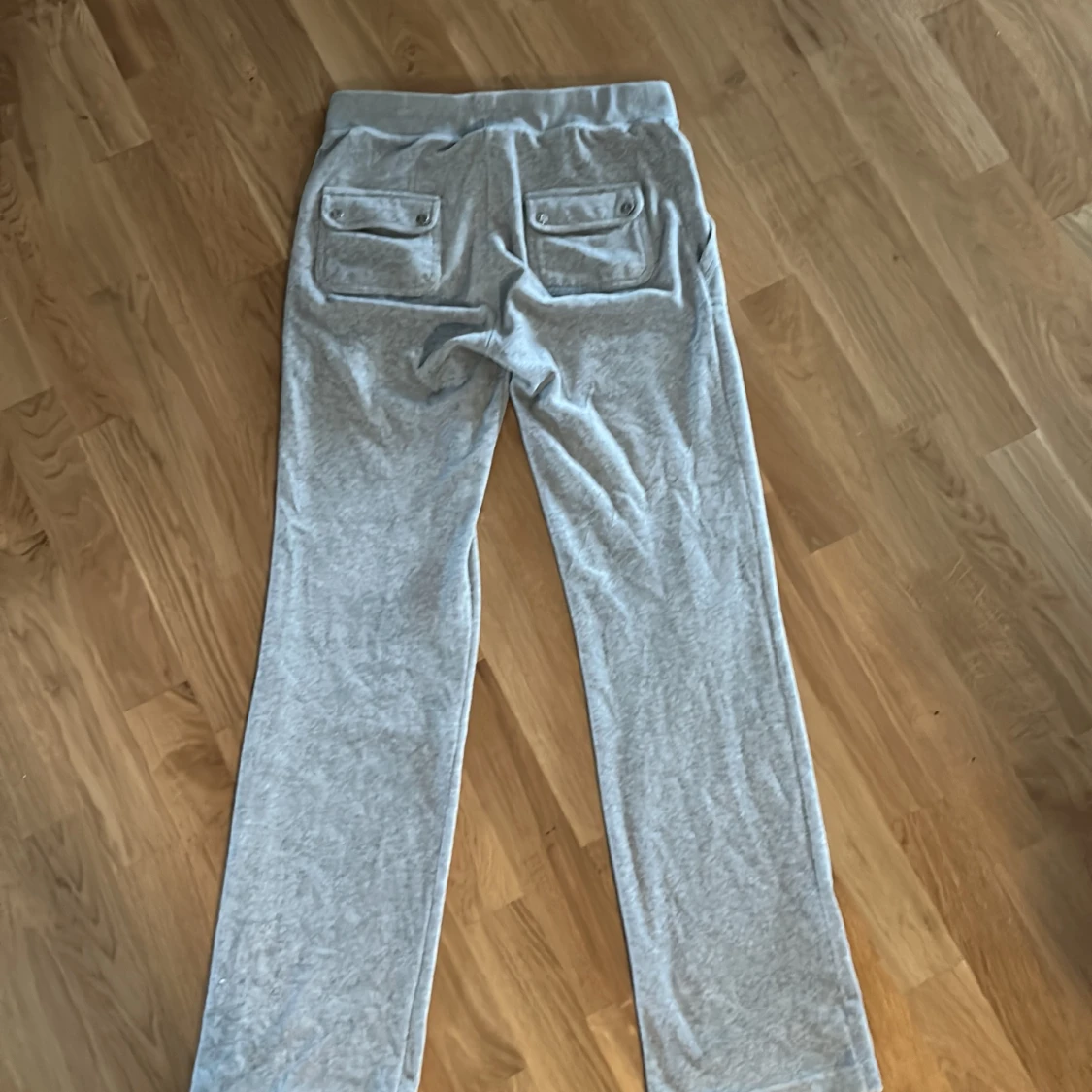 Grå mjukisbyxor från Juicy Couture med raka ben, bred resår i midjan och snörning framtill. Byxorna har stora fickor fram och bakfickor med lock och knapp. Perfekta för en chill och avslappnad look.