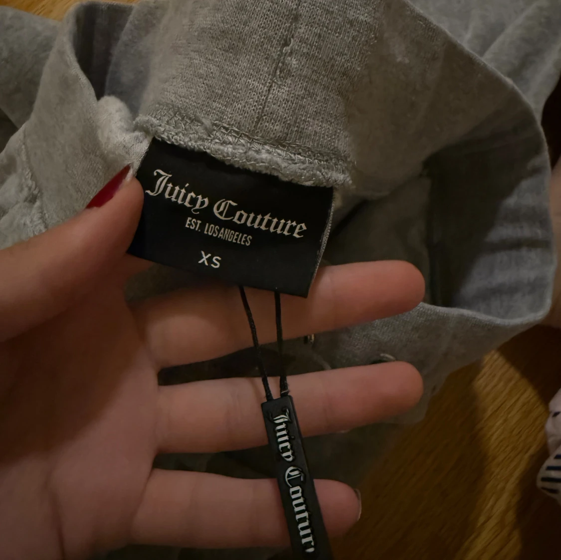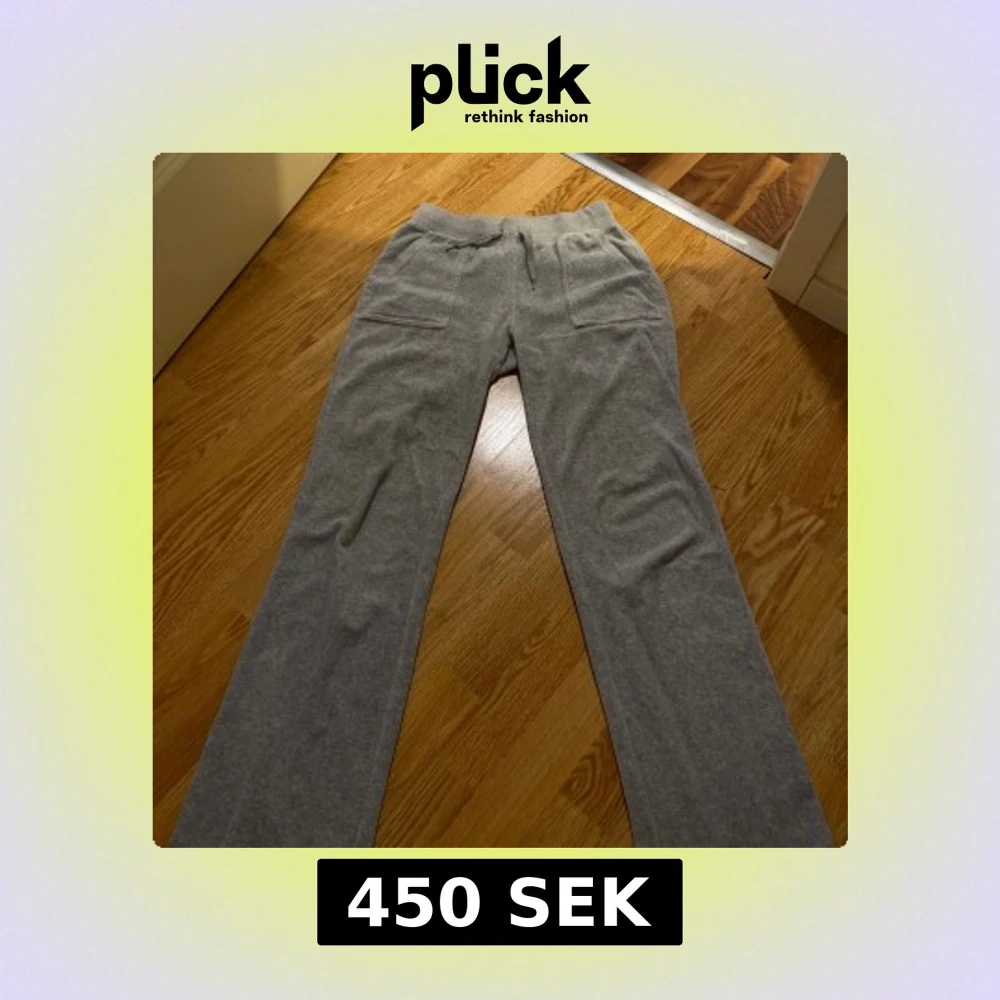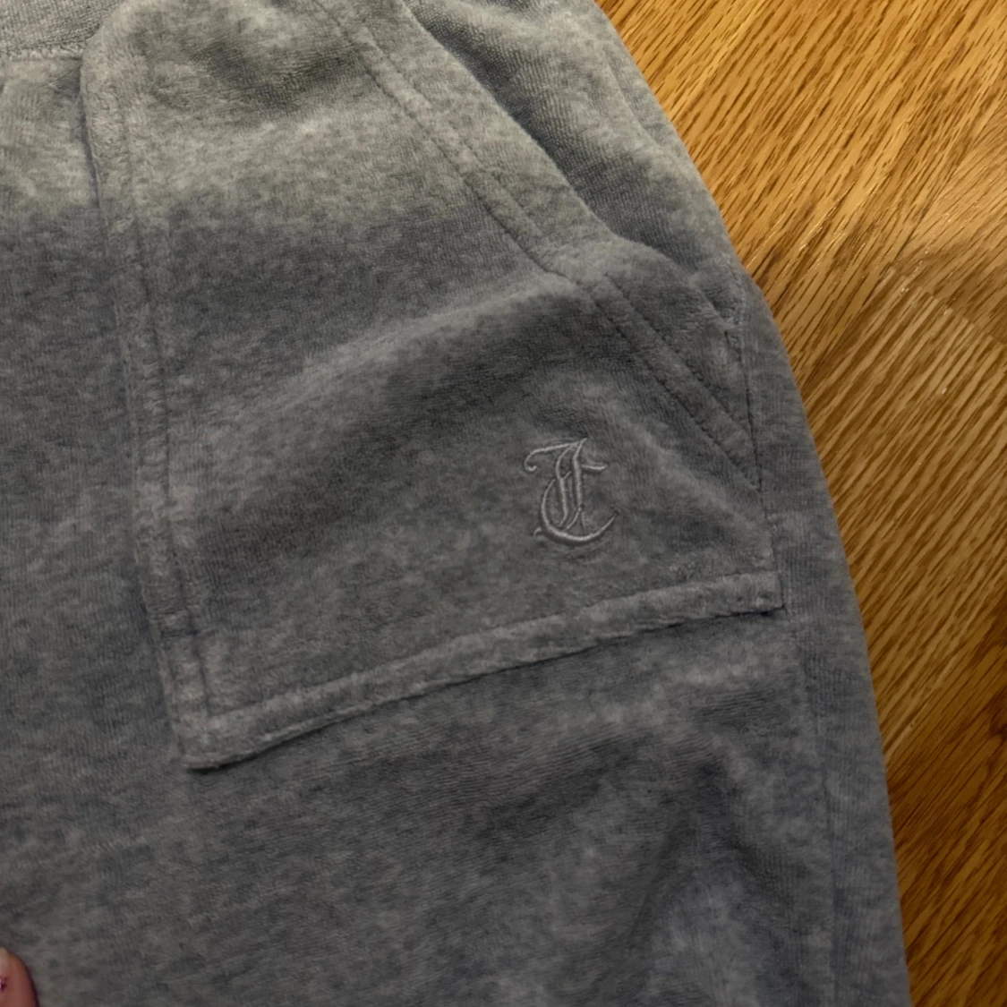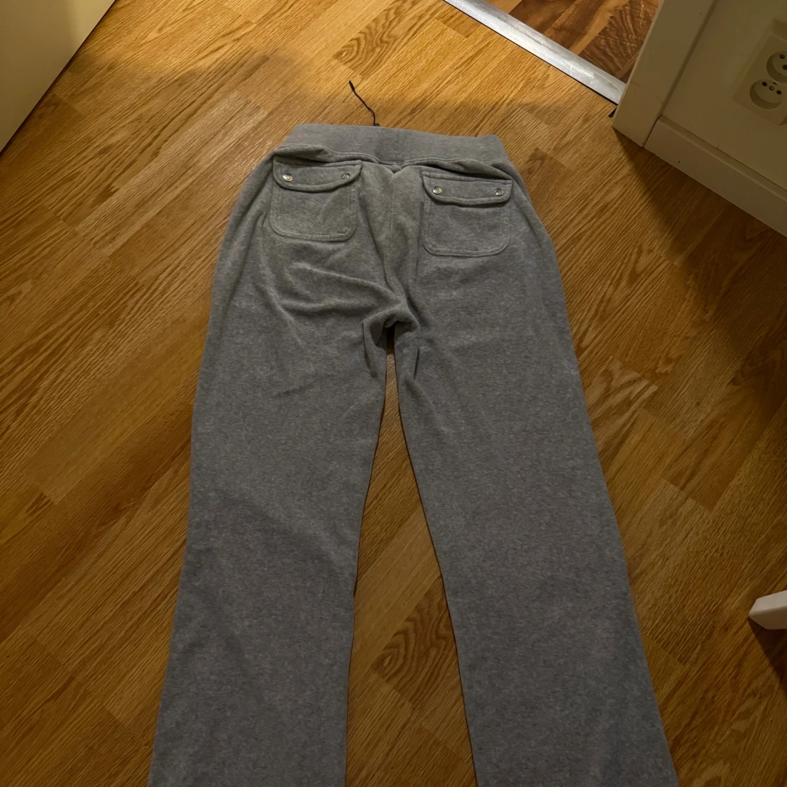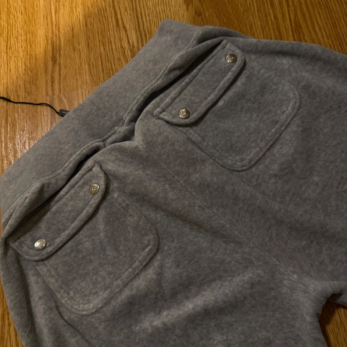 Mysiga grå mjukisbyxor från Juicy Couture med raka ben, snörning i midjan och stora fickor både fram och bak. Bakfickorna har snygga knappar och på ena framfickan finns en broderad JC-logga. Perfekta för chill dagar eller när du vill vara bekväm. Priset går att diskutera