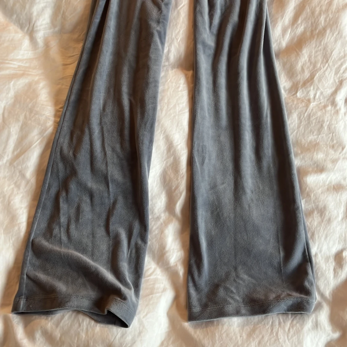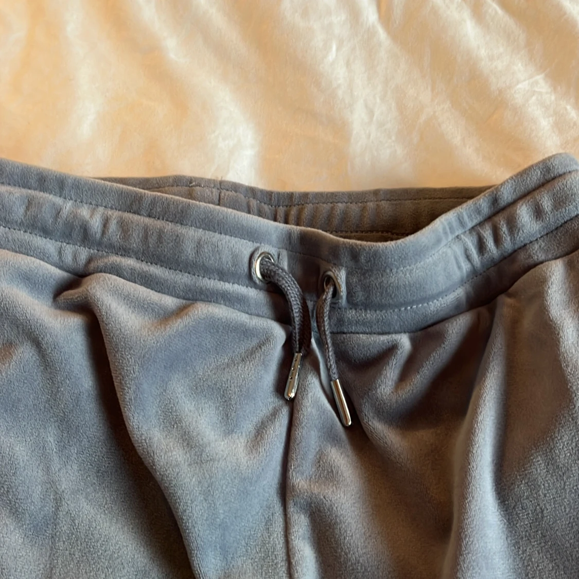 Grå mjukisbyxor i mjukt fleecematerial med breda ben och resår i midjan. Byxorna har snörning framtill och två bakfickor. Perfekta för chill dagar eller när du vill vara extra bekväm.