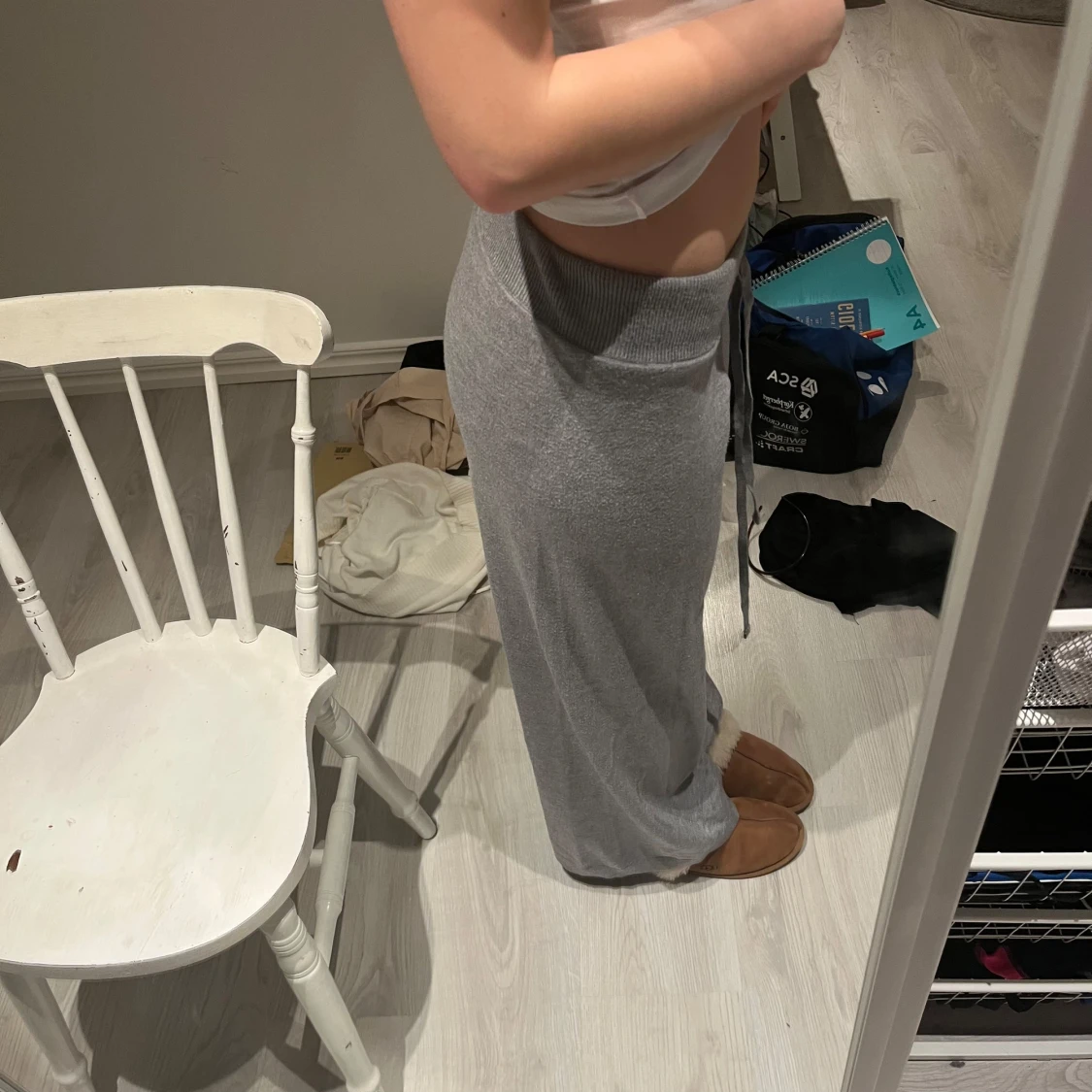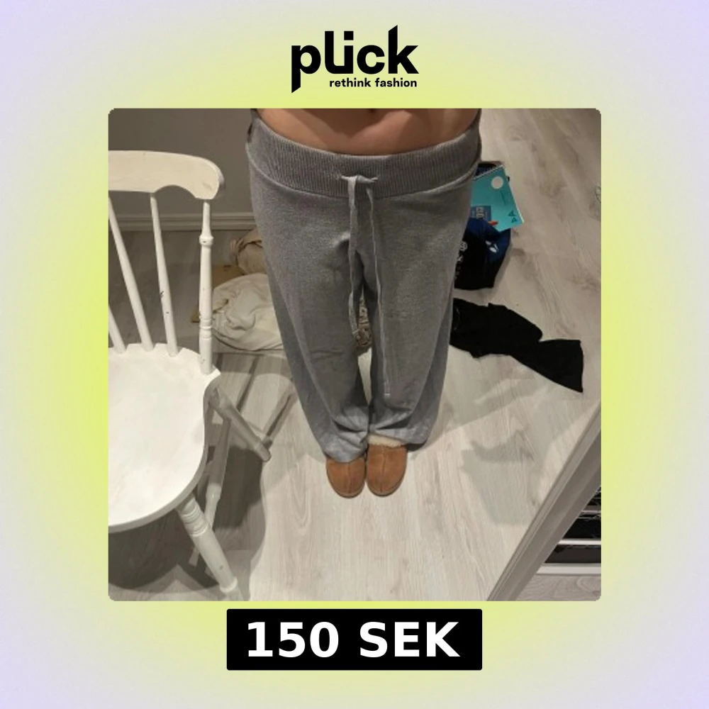 Säljer ett par grå mjukisbyxor med bred resår i midjan och knytning på framsidan. De är använda cirka två gånger så är i jättebra skick