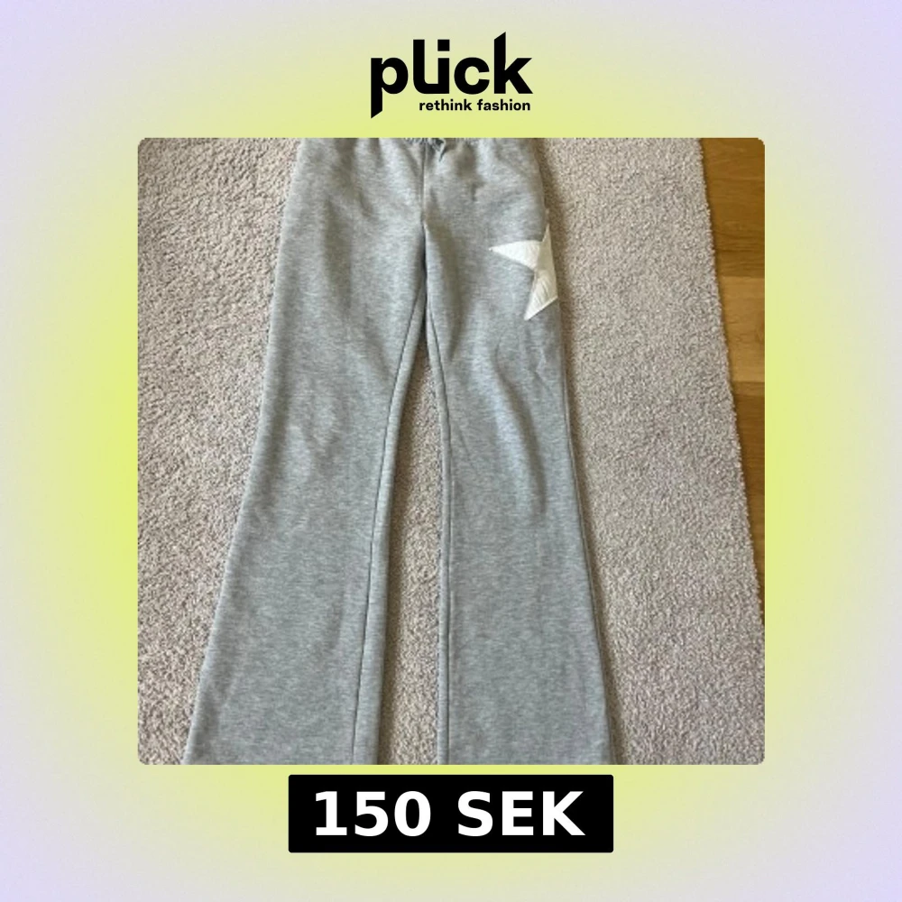 Grå mjukisbyxor från Kappahl med en stor vit stjärna på ena benet. Byxorna har resår i midjan och utsvängda ben. Jättecoola mjukisbyxor.