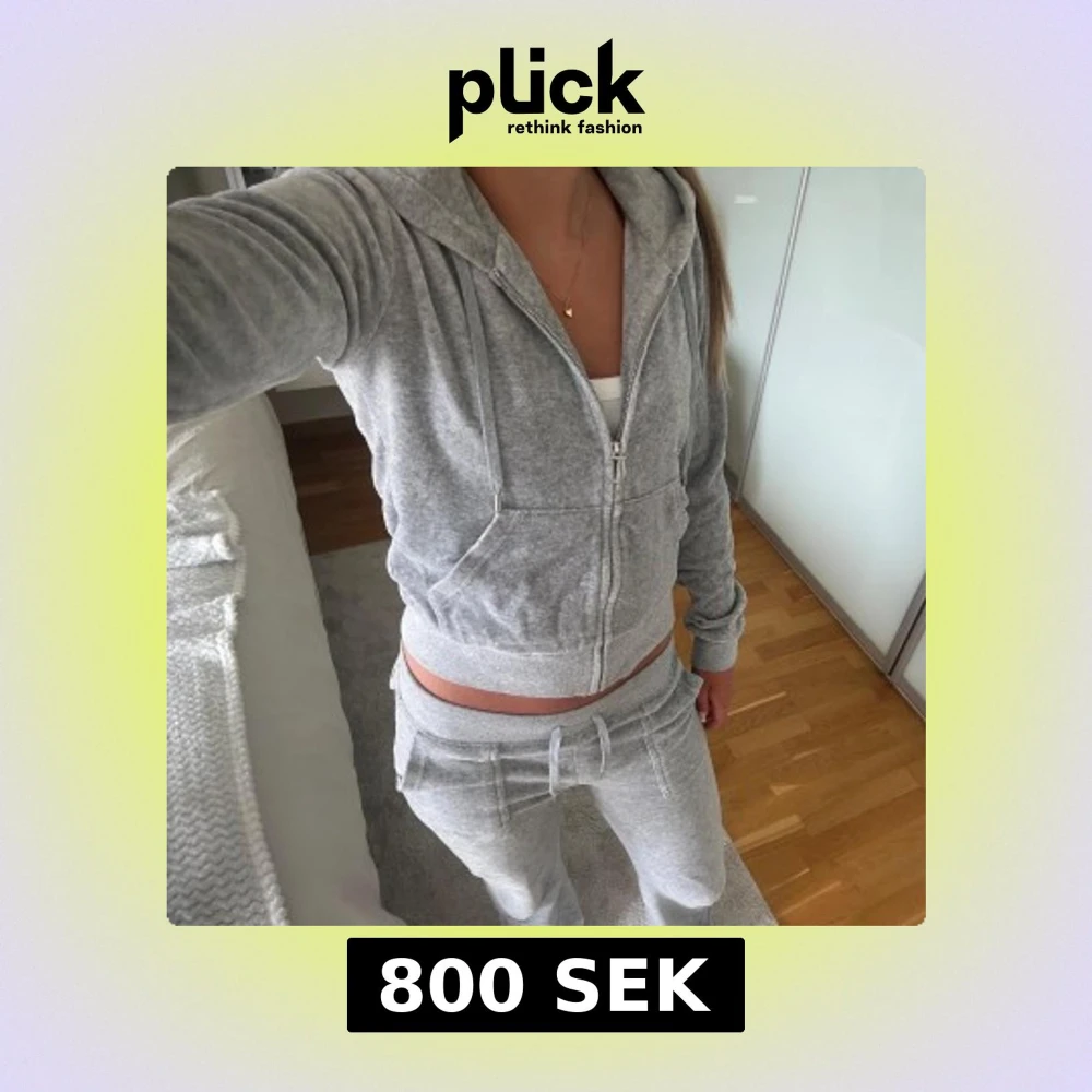 Säljer detta fina sättet från Juicy Couture med fickor både fram och bak. Tyvärr har de silvriga på byxsnörerna åkt av. Byxorna är i storlek XS och tröjan i storlek S. Säljer för jag tycker de är för korta och kommer ej till användning. Hör av er vid minsta fundering!