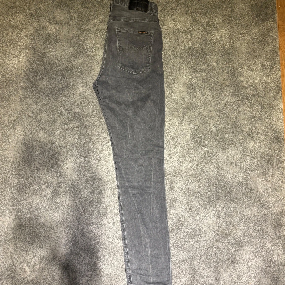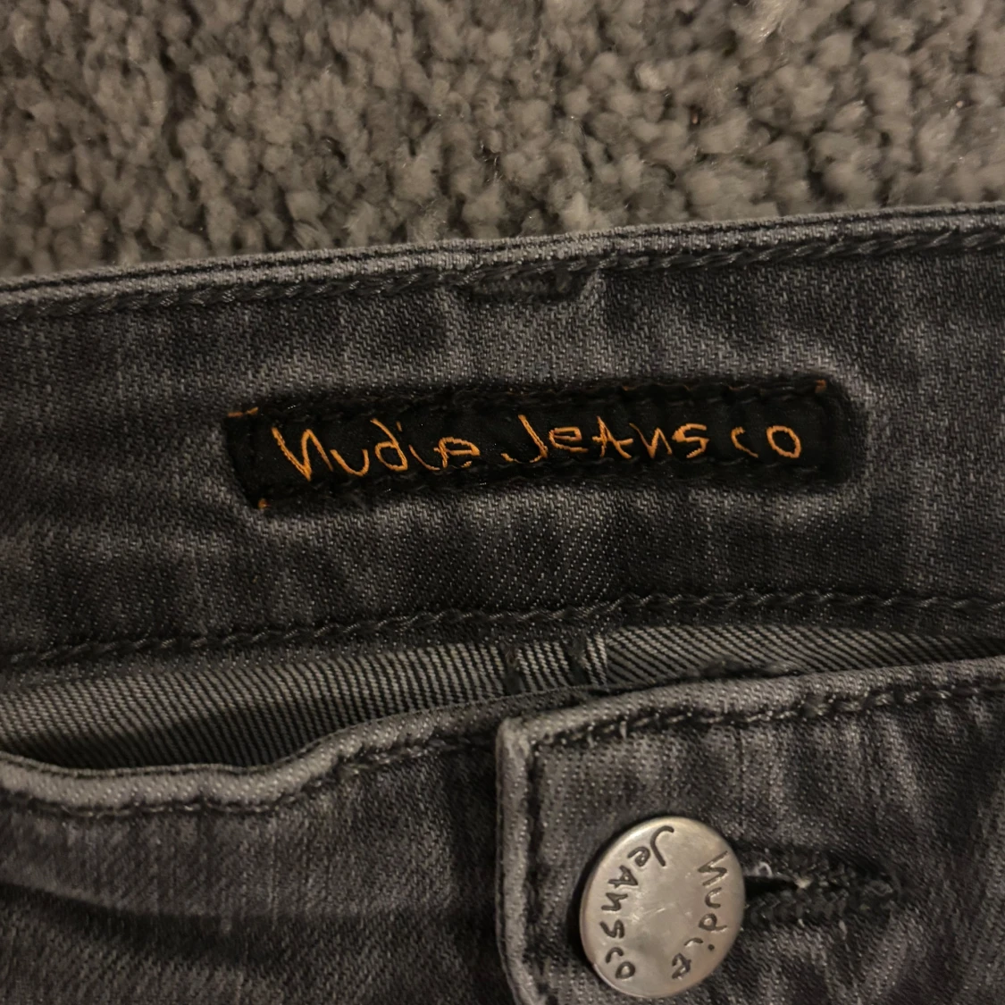 Säljer ett par gråa skinny jeans från Nudie Jeans med klassisk femficksdesign och broderad bakficka. Jeansen har hög midja och smal passform hela vägen ner. Materialet är mjukt och stretchigt jeans, perfekt för en clean och stilren look. Skriv om ni har några frågor om jeansen😁 Priset kan diskuteras vid snabb och smidig affär!
