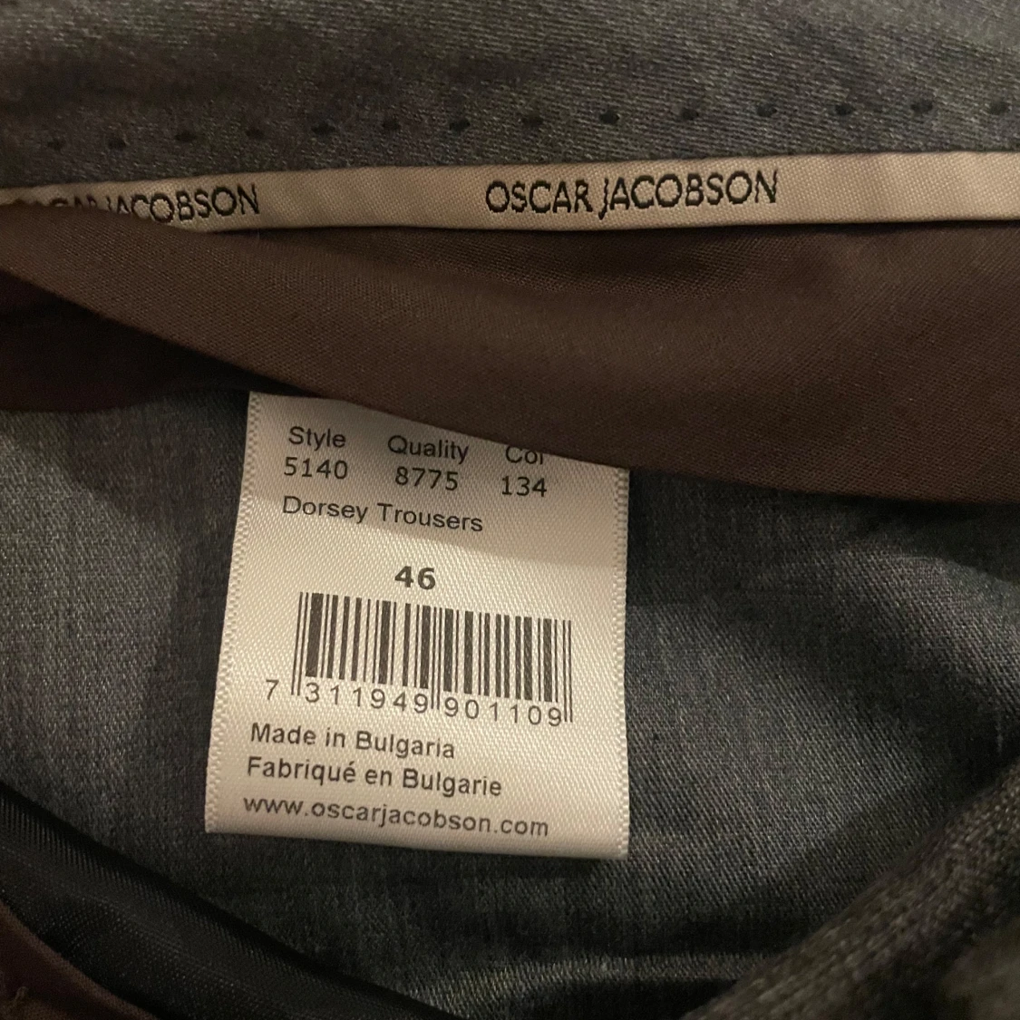 Snygga grå kostymbyxor från Oscar Jacobson i klassisk rak modell. Byxorna är tillverkade i ett mjukt och stilrent tyg som passar perfekt till en dressad look. Perfekta för dig som gillar stilrena och tidlösa plagg.